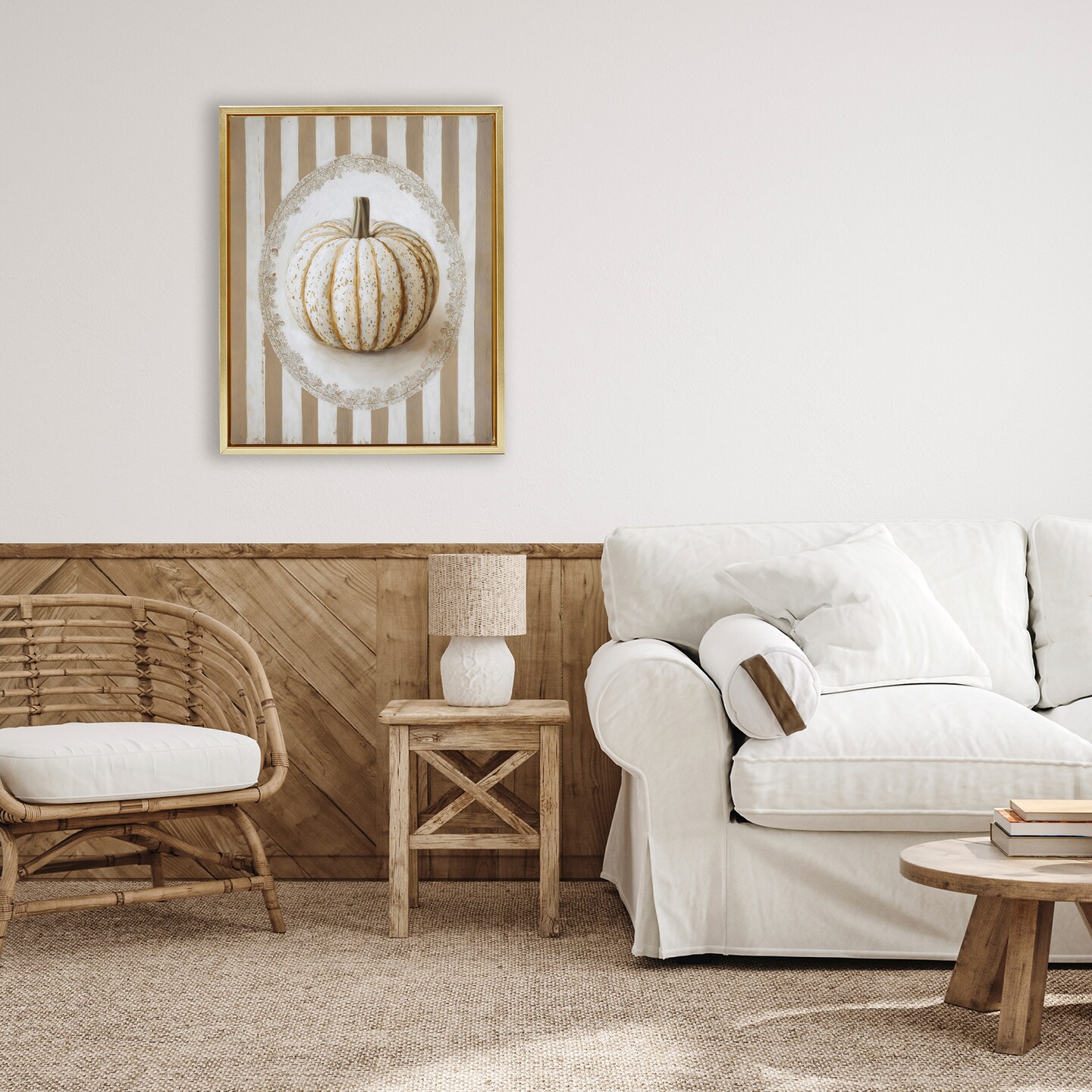 Stupell Industries Beige Stripes Pumpkin Floating Frame, design by Arlington Prints