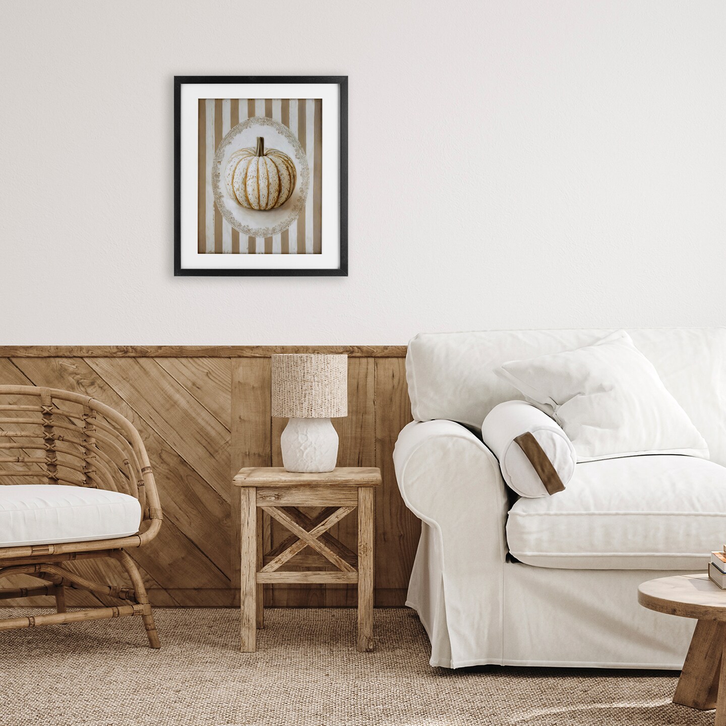 Stupell Industries Beige Stripes Pumpkin Framed Print Under Glass, design by Arlington Prints