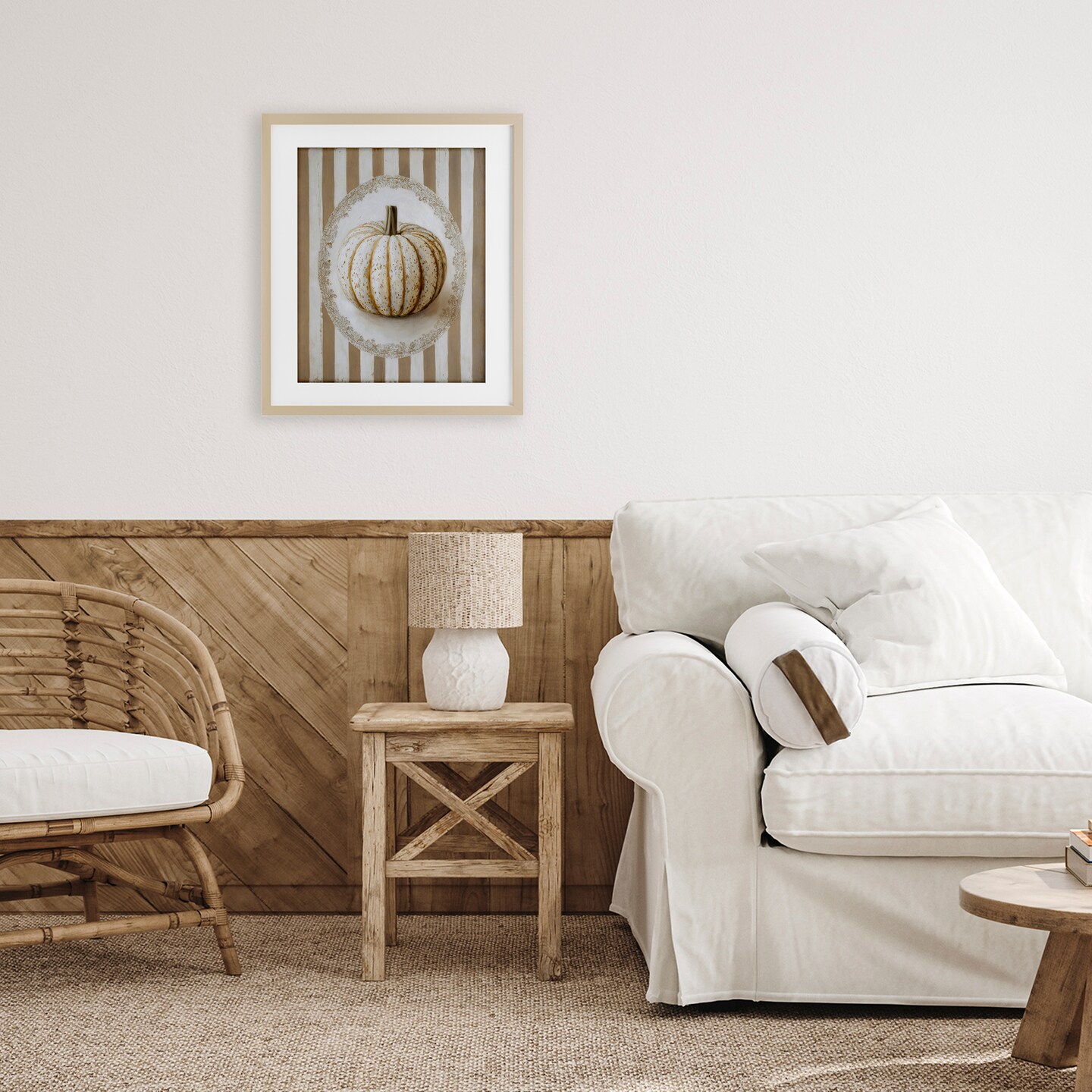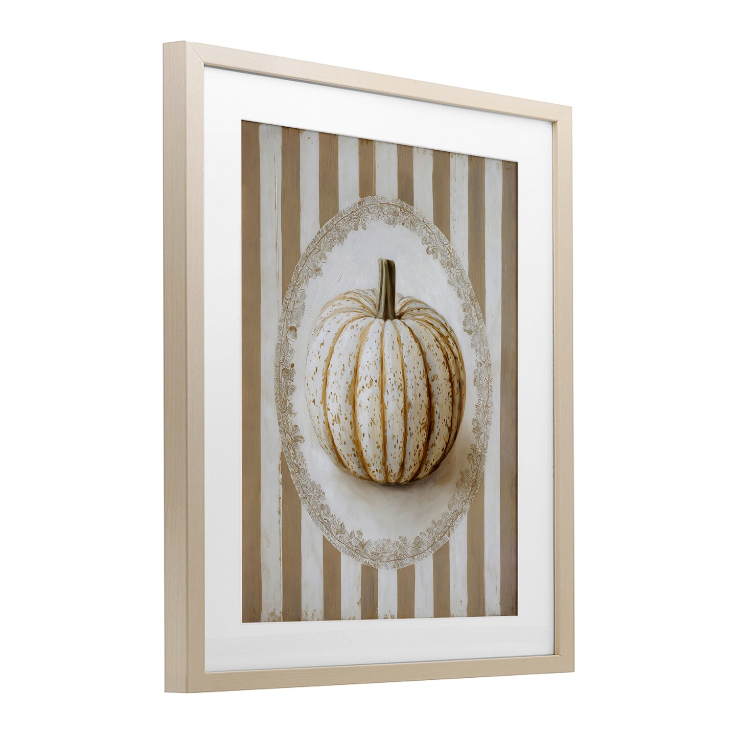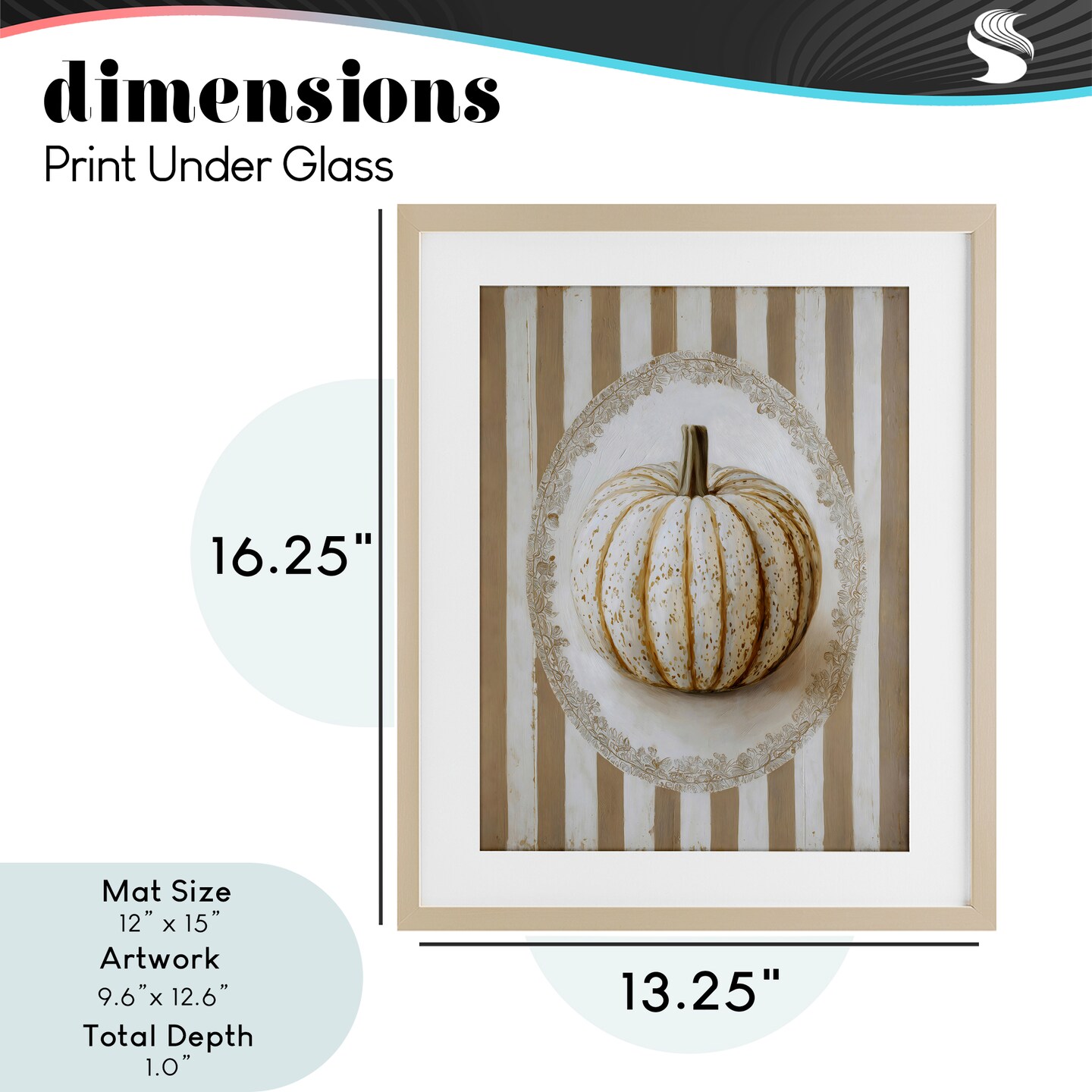 Stupell Industries Beige Stripes Pumpkin Framed Print Under Glass, design by Arlington Prints