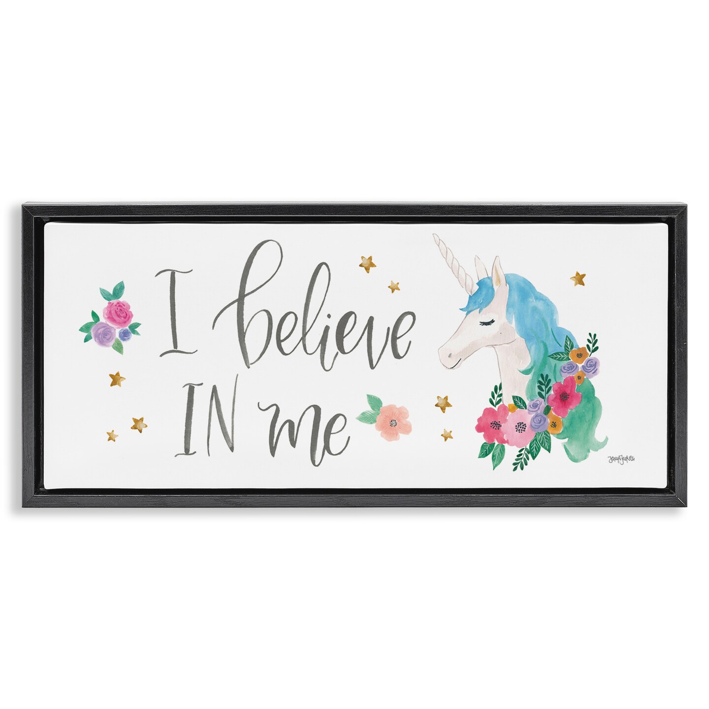 Stupell Industries Believe In Me Blue Unicorn Framed Floater Canvas Wall Art