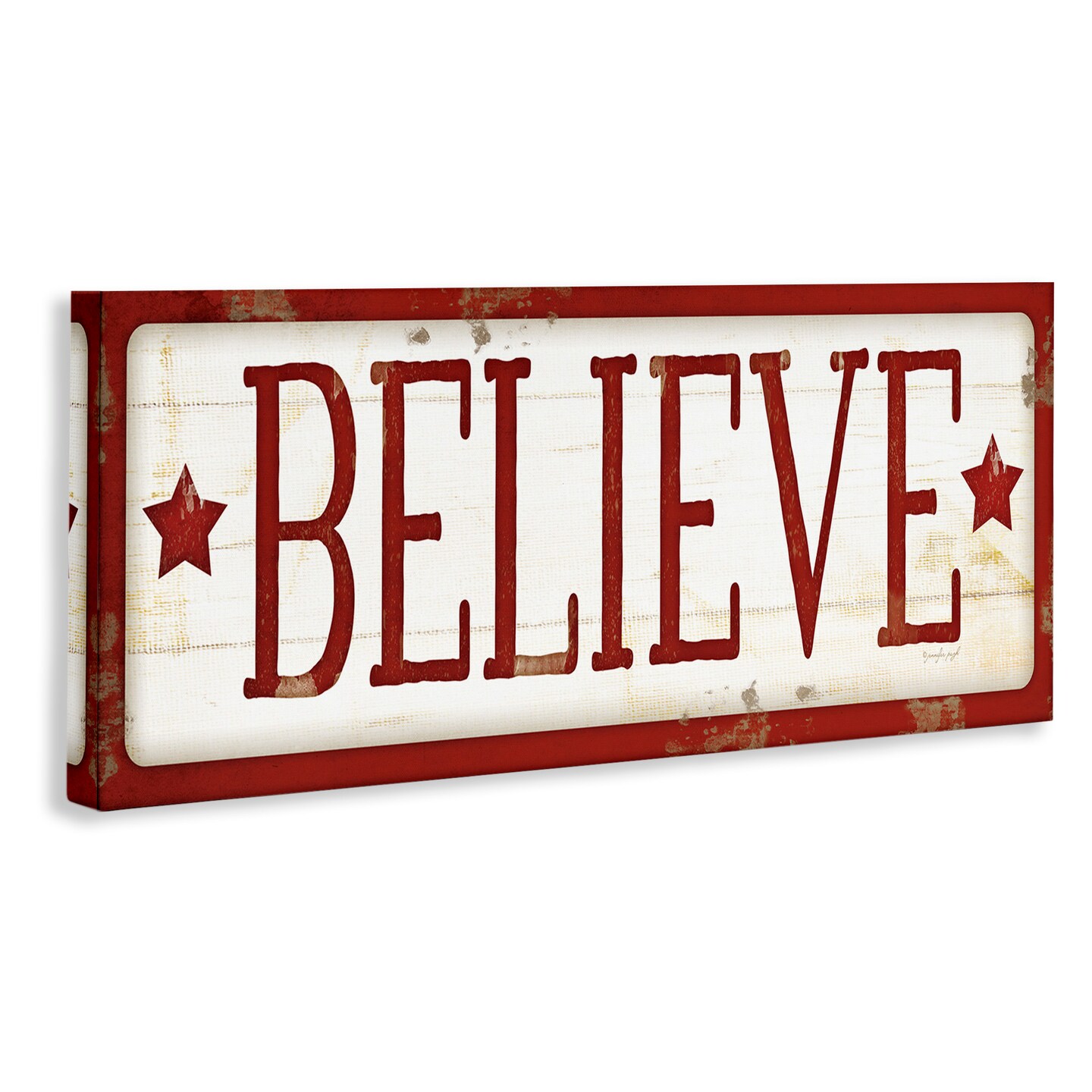 Stupell Industries Believe Red Christmas Phrase Canvas Wall Art