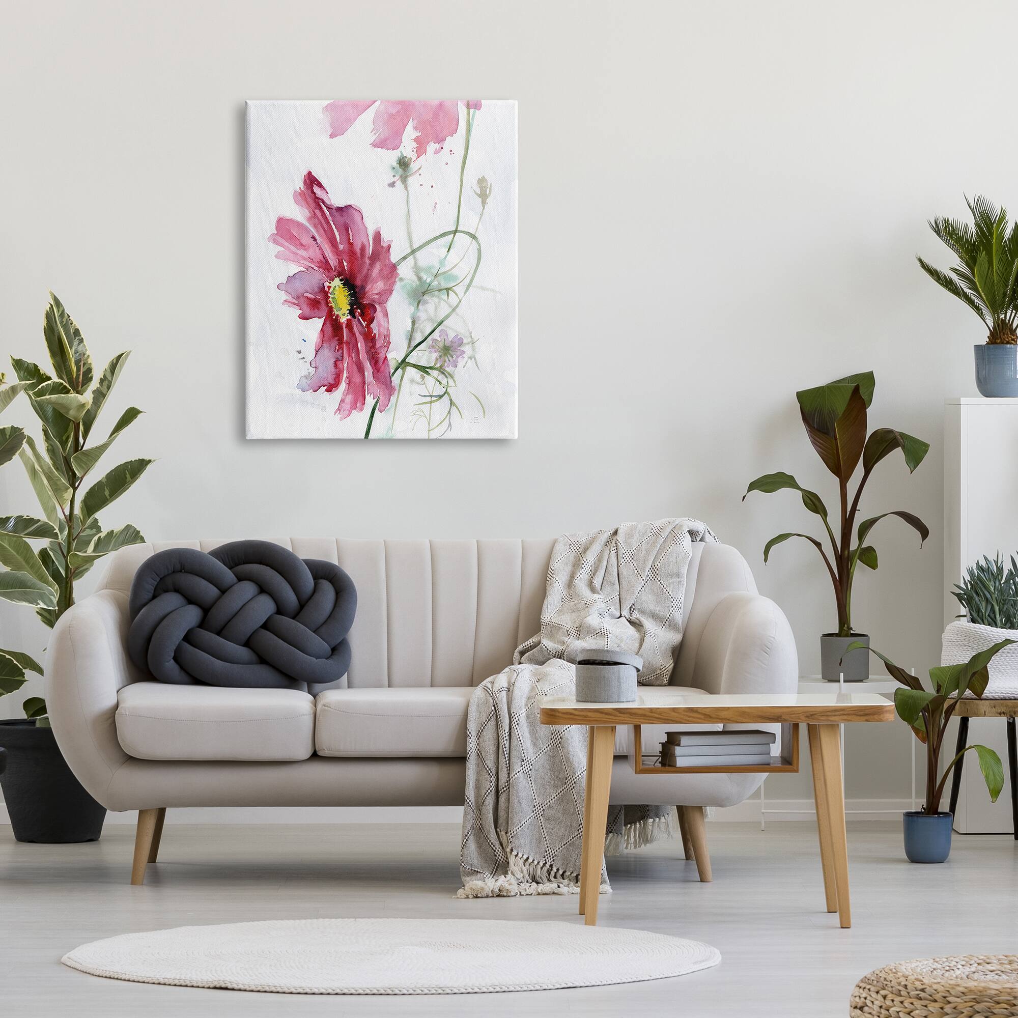 Stupell Industries Bending Pink Cosmo Flower Abstract Floral Watercolor Painting Canvas Wall Art