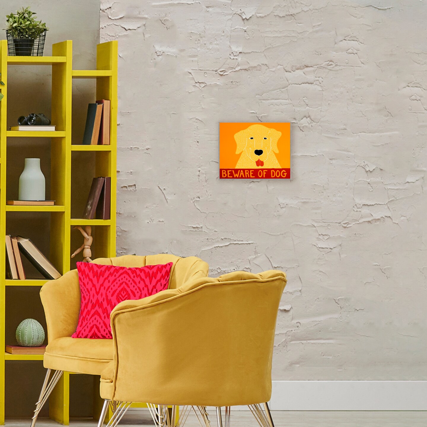 Stupell Industries Beware Of Dog Yellow & Red Framed Giclee, design by Stephen Huneck