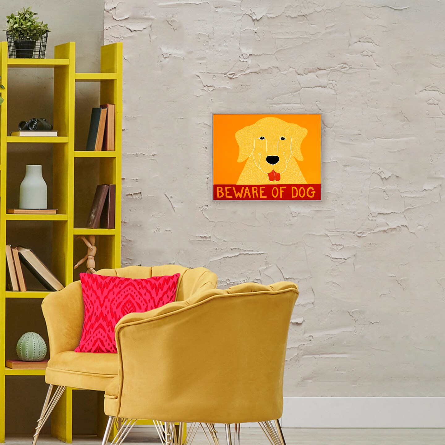 Stupell Industries Beware Of Dog Yellow & Red Framed Giclee, design by Stephen Huneck