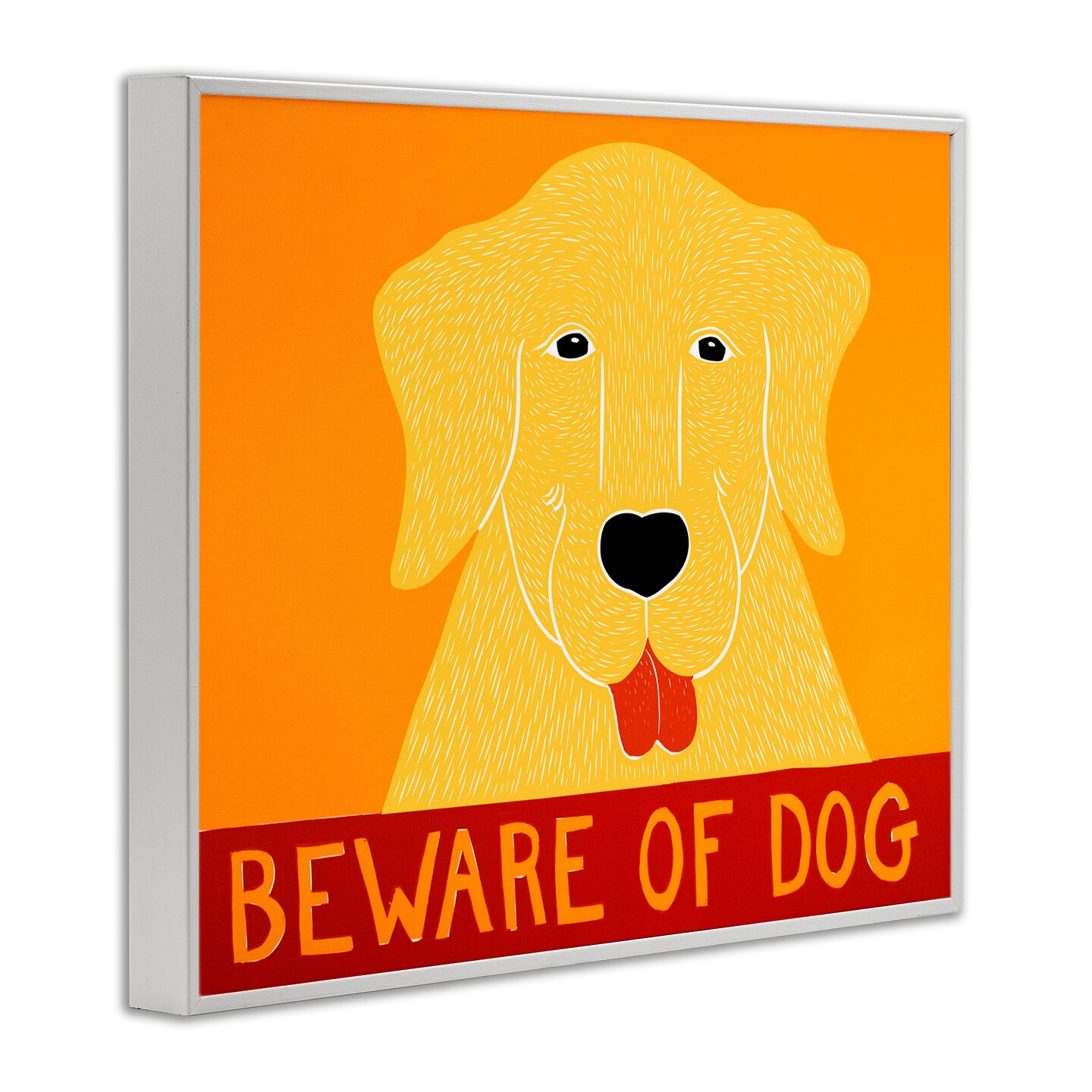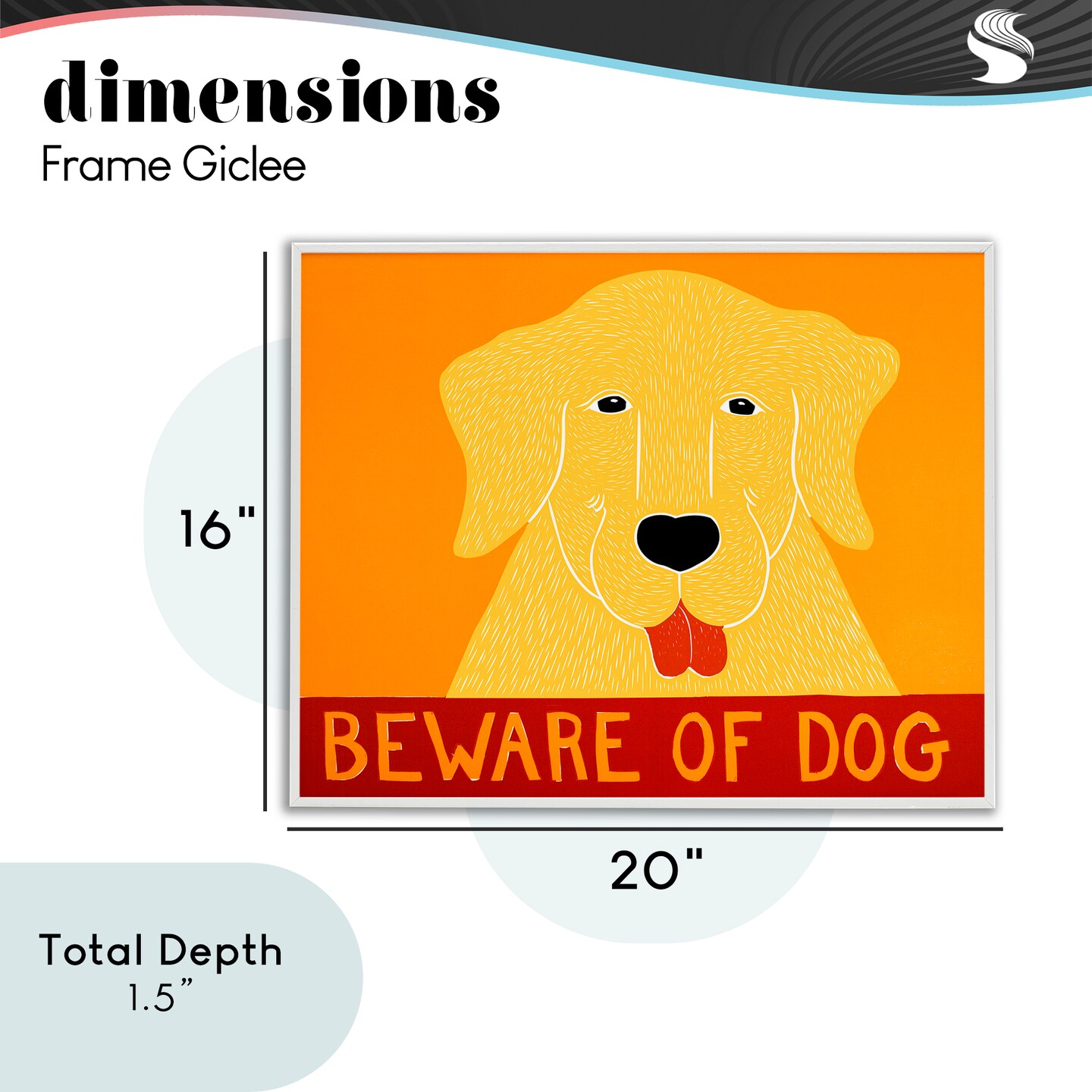 Stupell Industries Beware Of Dog Yellow & Red Framed Giclee, design by Stephen Huneck