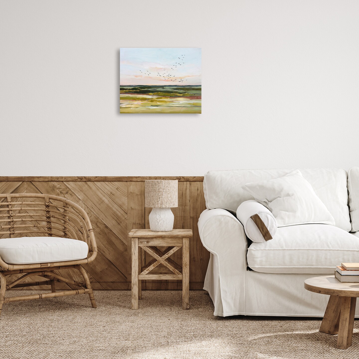 Stupell Industries Bird Flock over Grassland Canvas Wall Art Design by Rebecca Fox