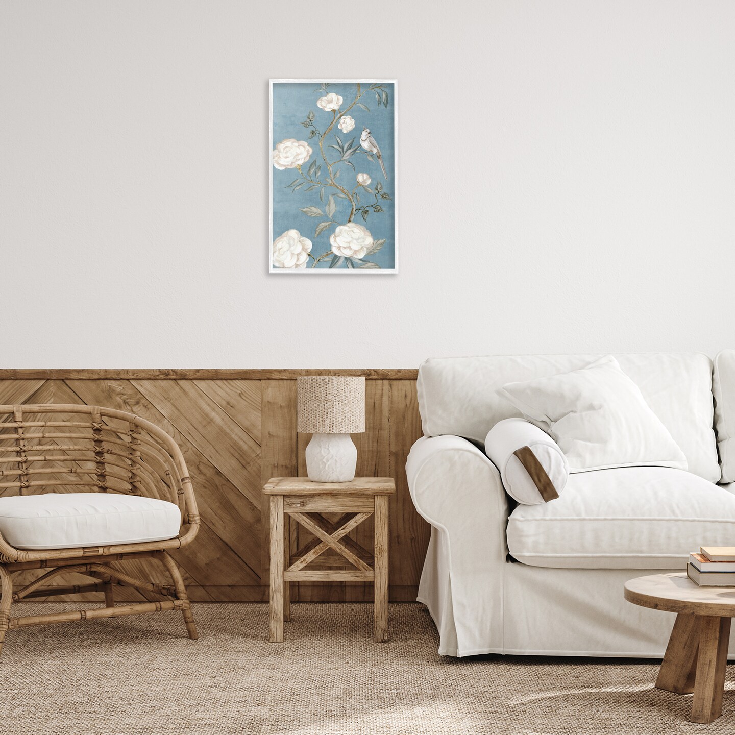 Stupell Industries Bird on Traditional Florals Framed Giclee Wall Art Design by Alex Black