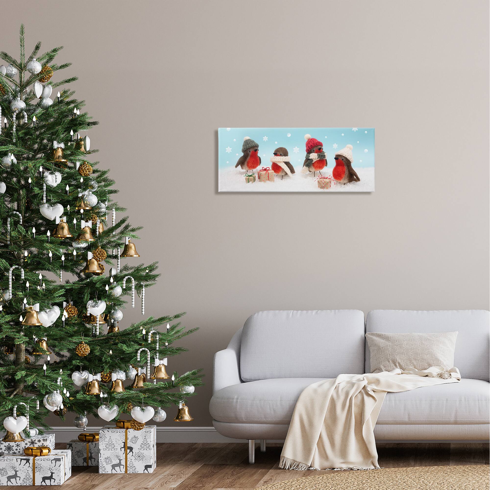 Stupell Industries Birds & Christmas Gifts Snowflakes Canvas Wall Art