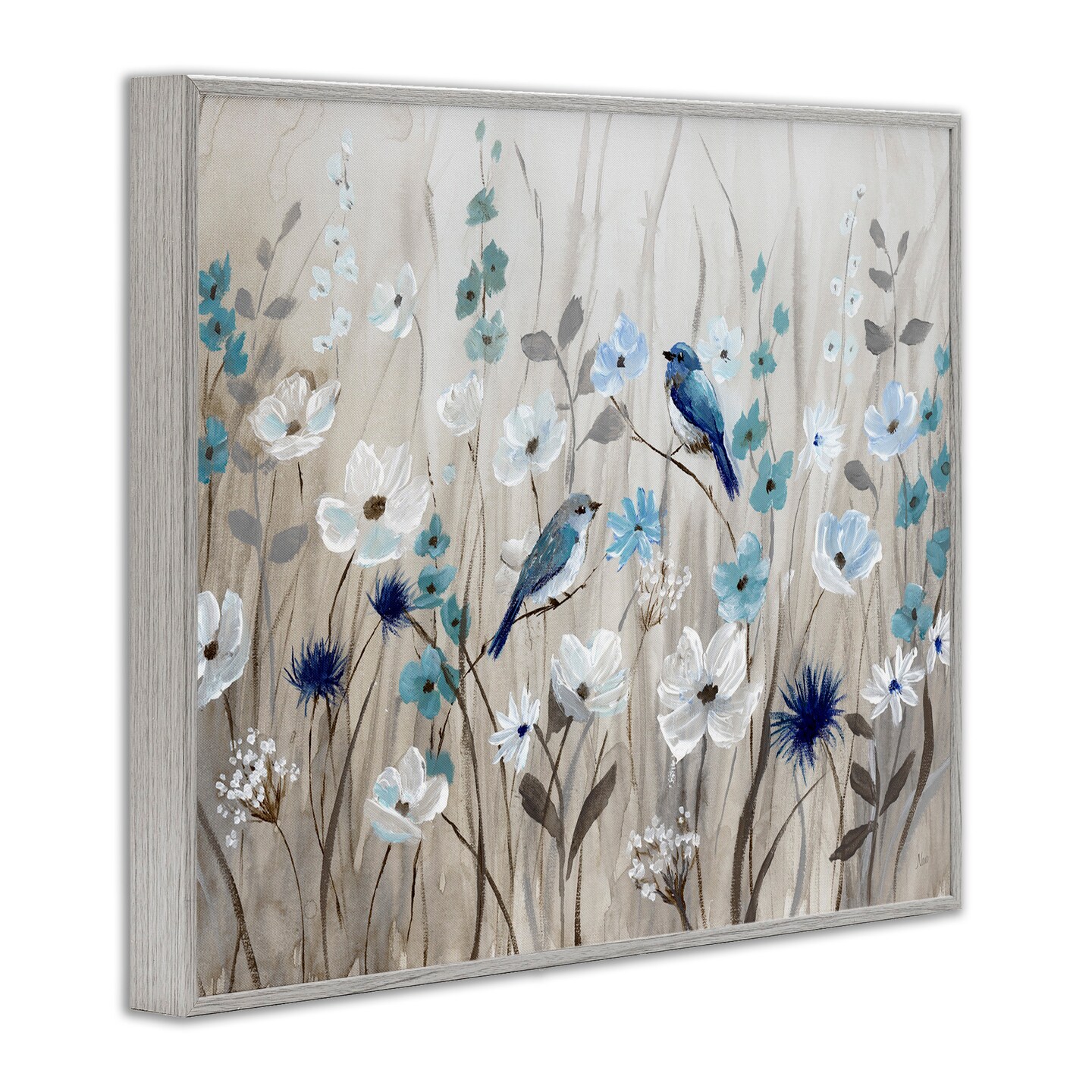 Stupell Industries Birds Floral Meadow Blossoms Framed Giclee Art