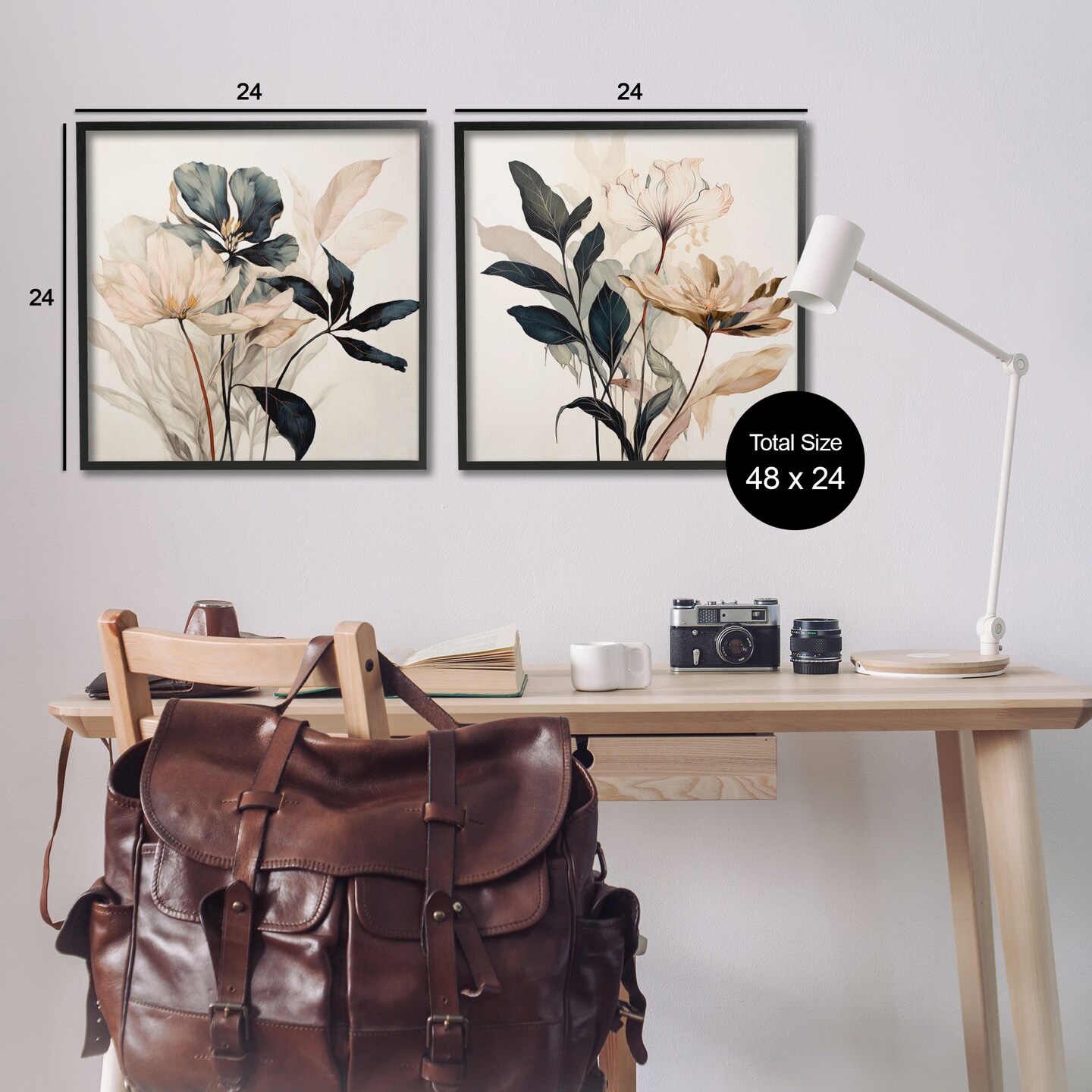 Stupell Industries Black & Beige Botanicals 2pc Framed Giclee Wall Art Set Design by Lazar Studio