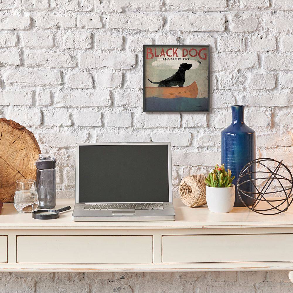 Stupell Industries Black Dog Canoe Company Pet Boating Lake Sports Black Framed Wall Art