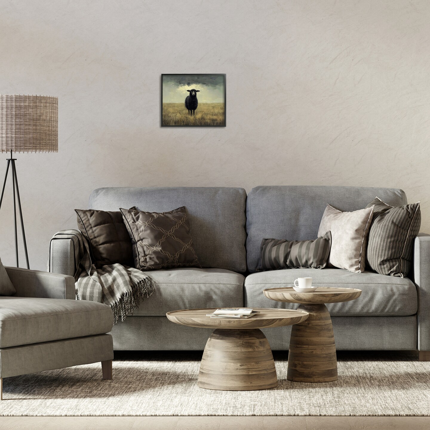 Stupell Industries Black Sheep in Field Black Framed Giclee Art, design by Arlington Prints