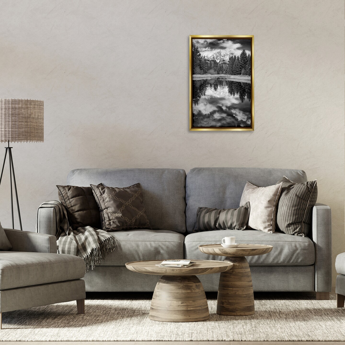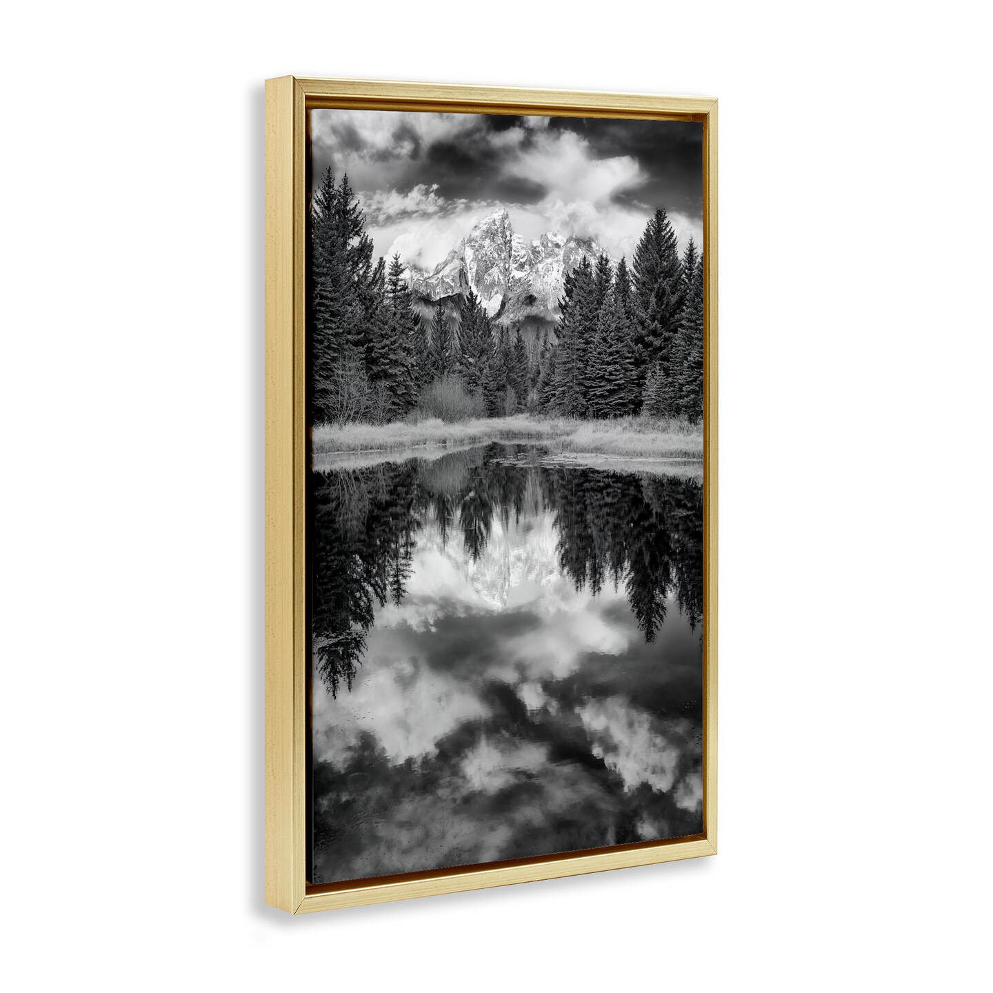 Stupell Industries Black & White Forest Reflection Framed Floater Canvas Wall Art Design by Rick Berk