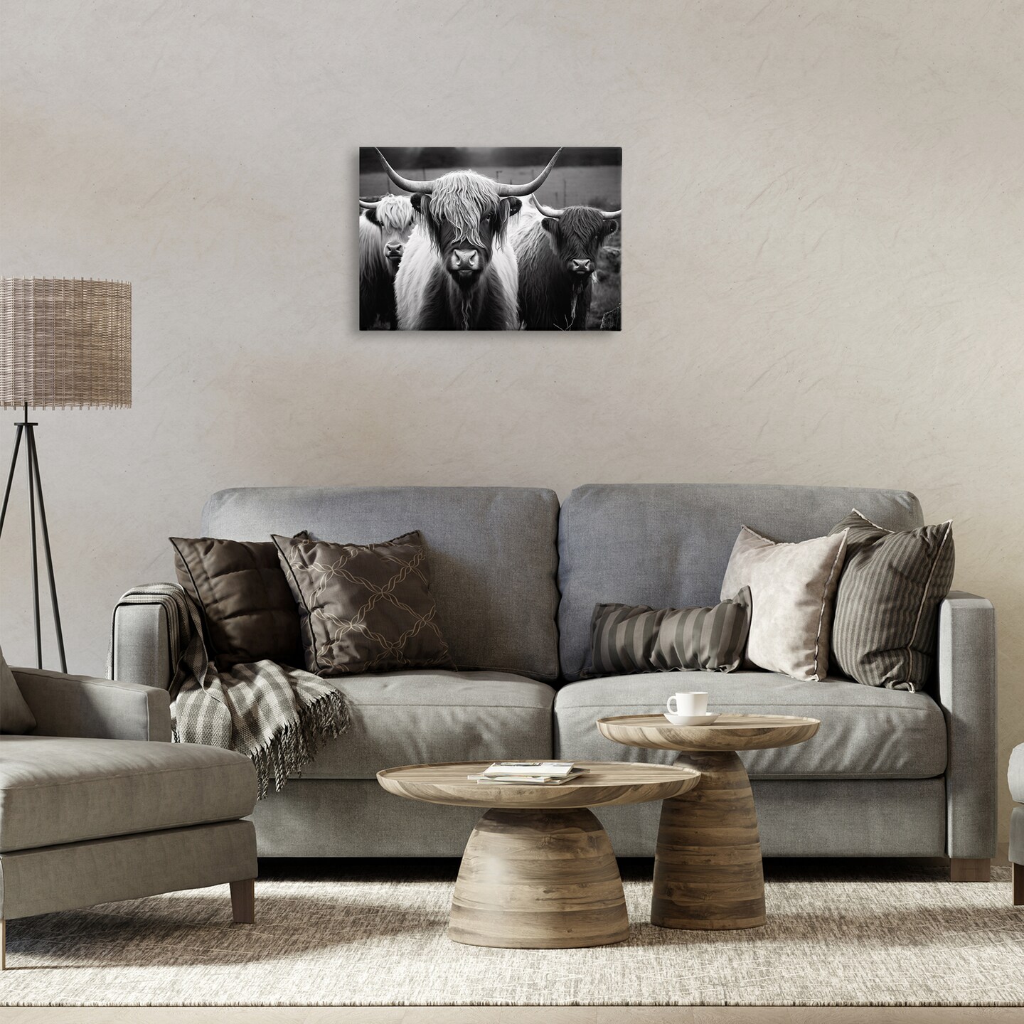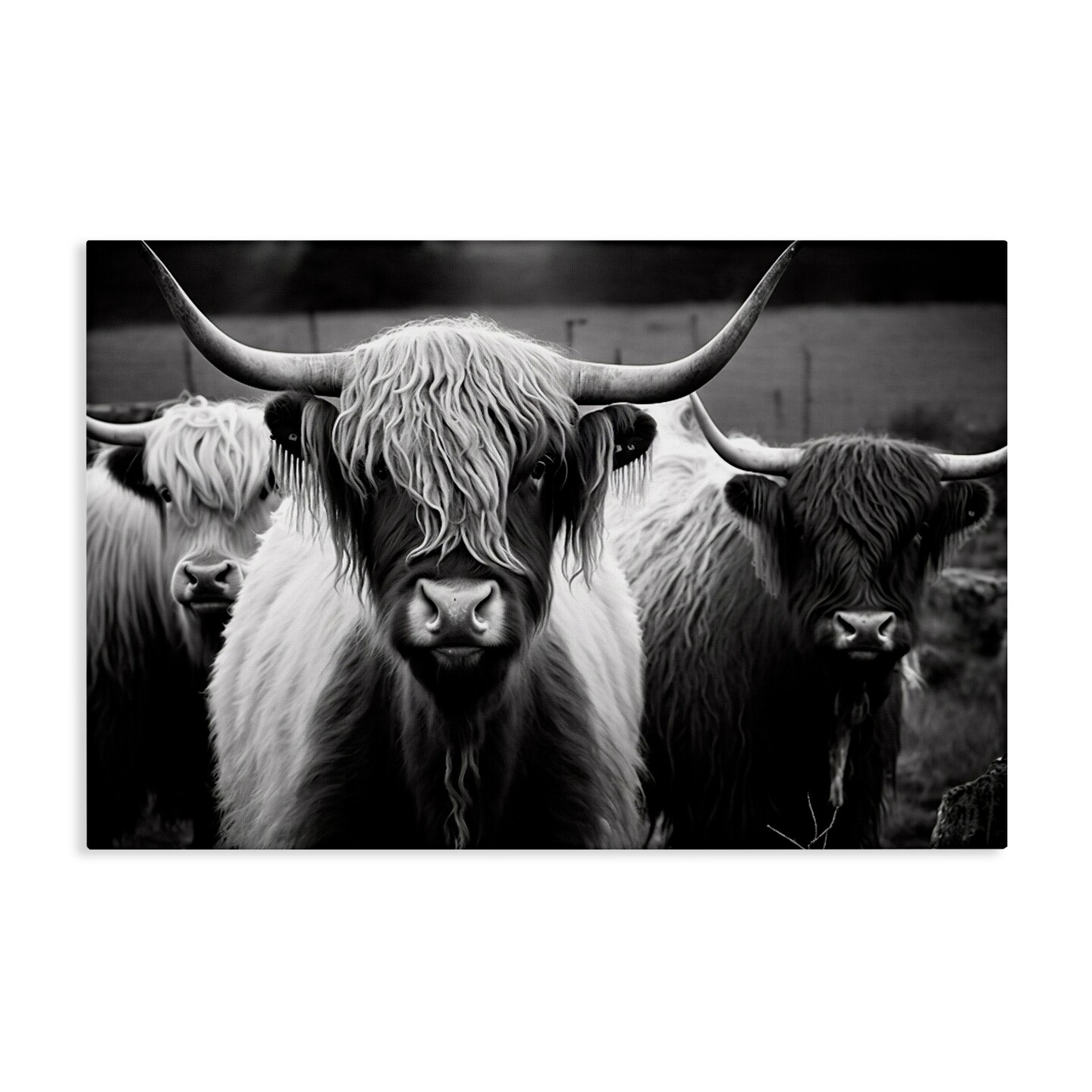 Stupell Industries Black & White Highland Cows Canvas Wall Art Design by Franklyn Gregory