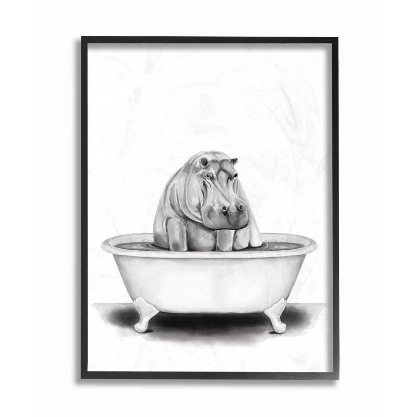 Stupell Industries Black & White Hippo in a Tub with Black Frame Wall Accent