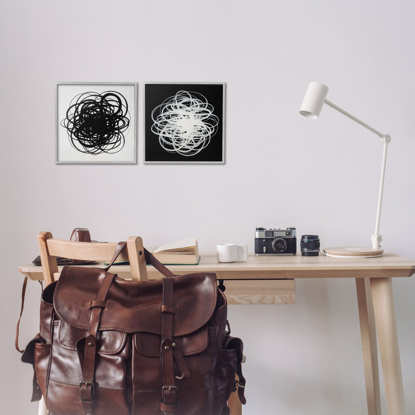 Stupell Industries Black & White Tangled Lines 2 pc Framed Giclee Wall Art Set Design by Haxton