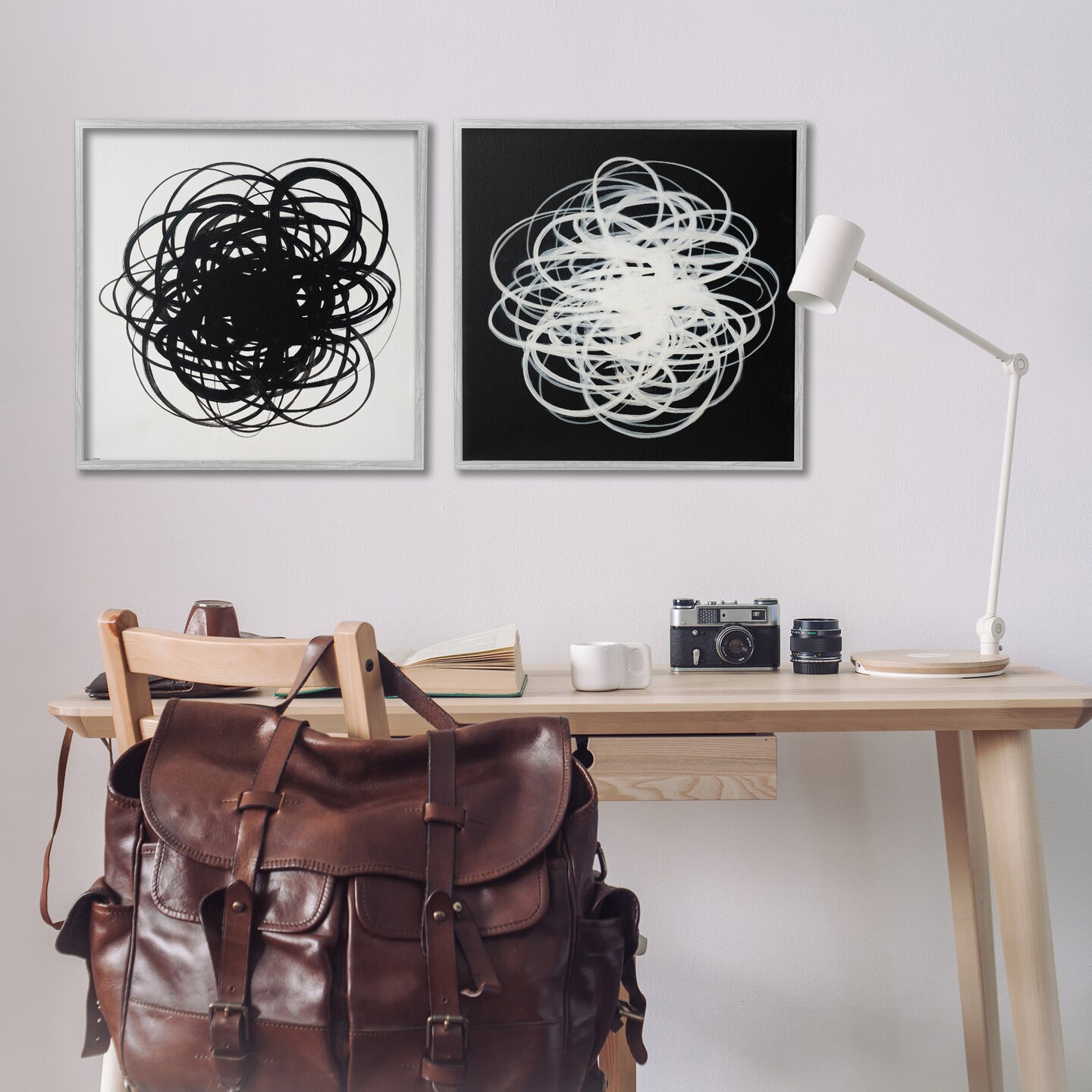 Stupell Industries Black & White Tangled Lines 2 pc Framed Giclee Wall Art Set Design by Haxton
