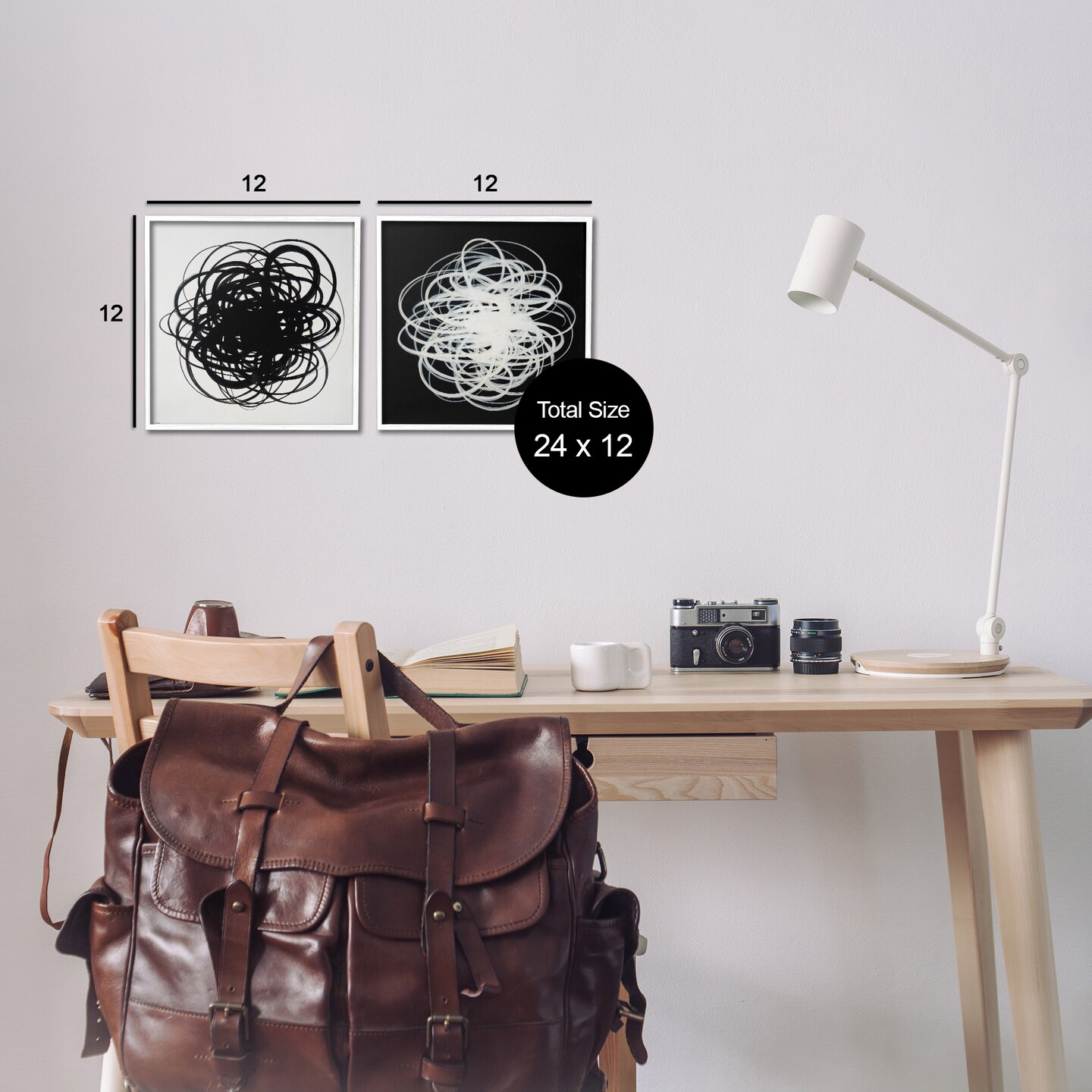 Stupell Industries Black & White Tangled Lines 2 pc Framed Giclee Wall Art Set Design by Haxton
