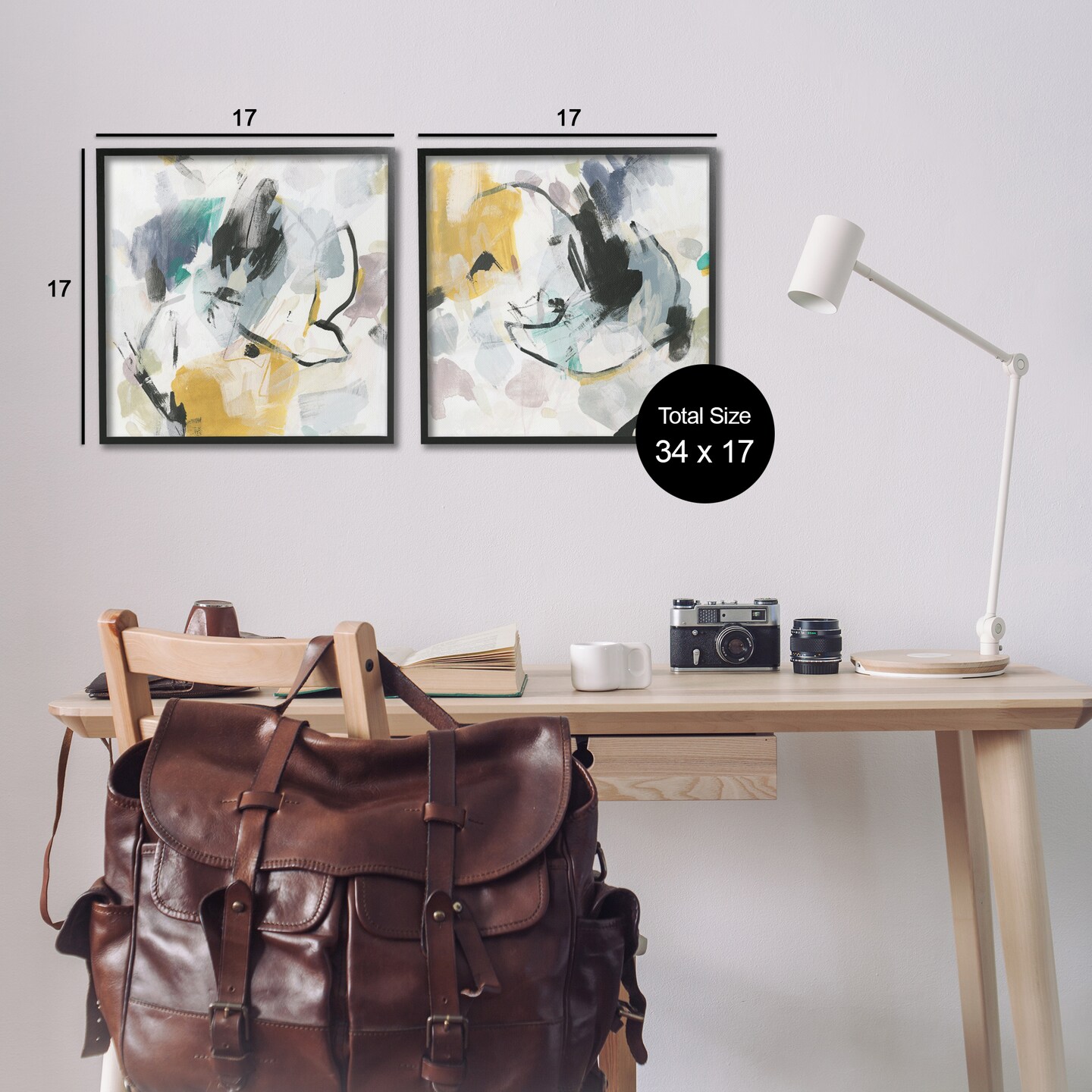 Stupell Industries Black & Yellow Abstract Splash 2 pc Framed Giclee Wall Art Set Design by June Erica Vess