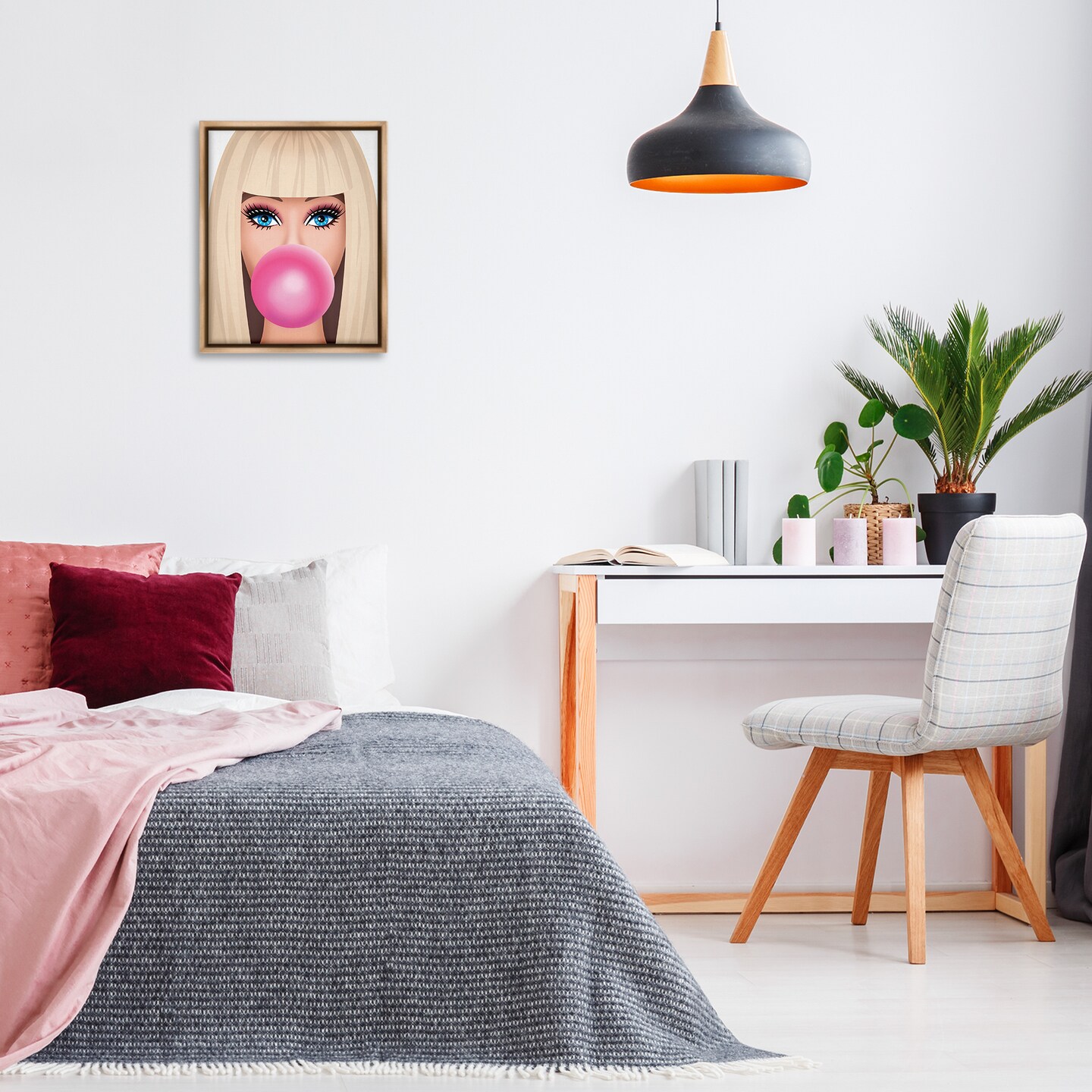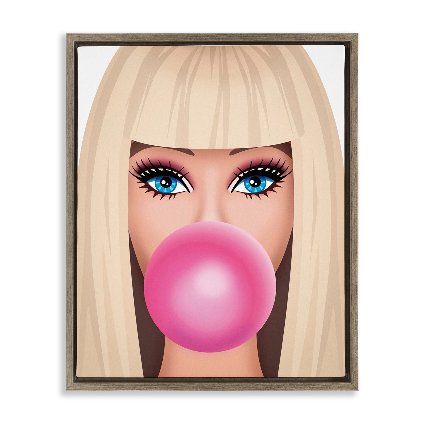 Stupell Industries Blonde Girl & Bubblegum Framed Floater Canvas Wall Art Design by Nataly White