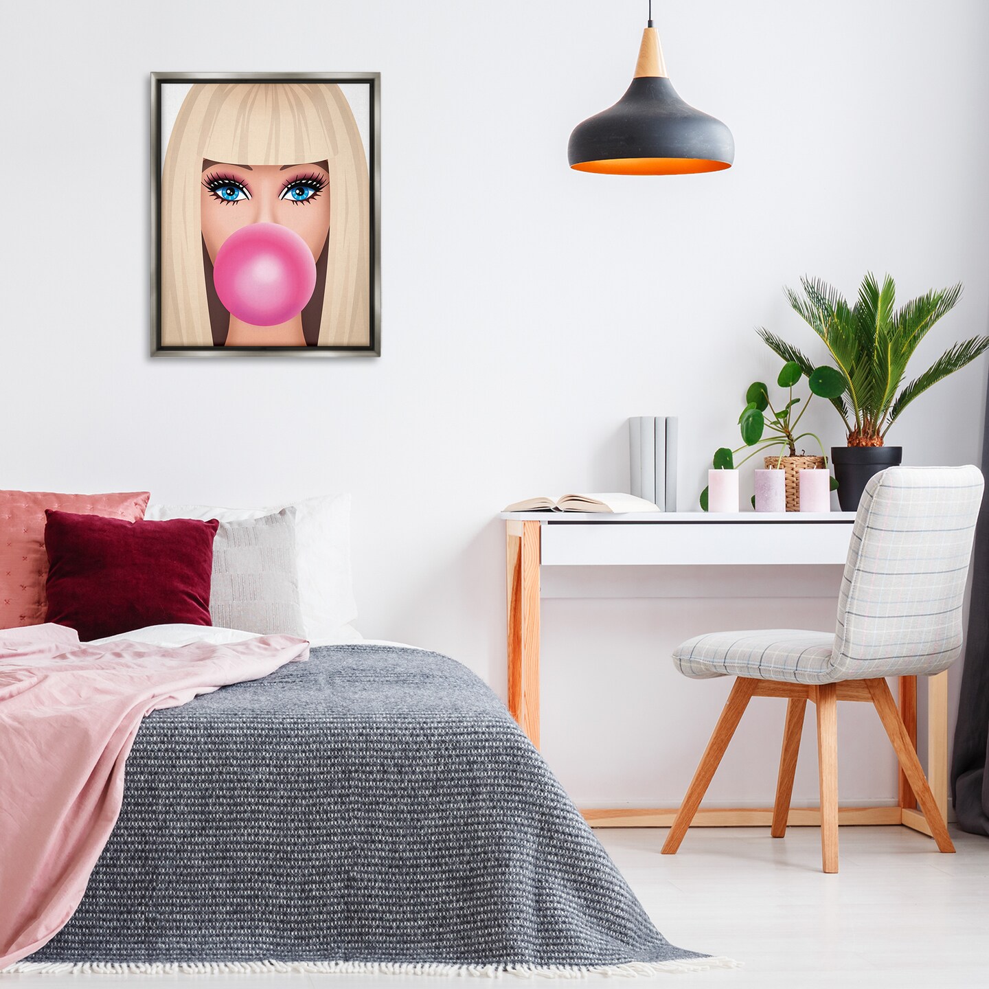 Stupell Industries Blonde Girl & Bubblegum Framed Floater Canvas Wall Art Design by Nataly White