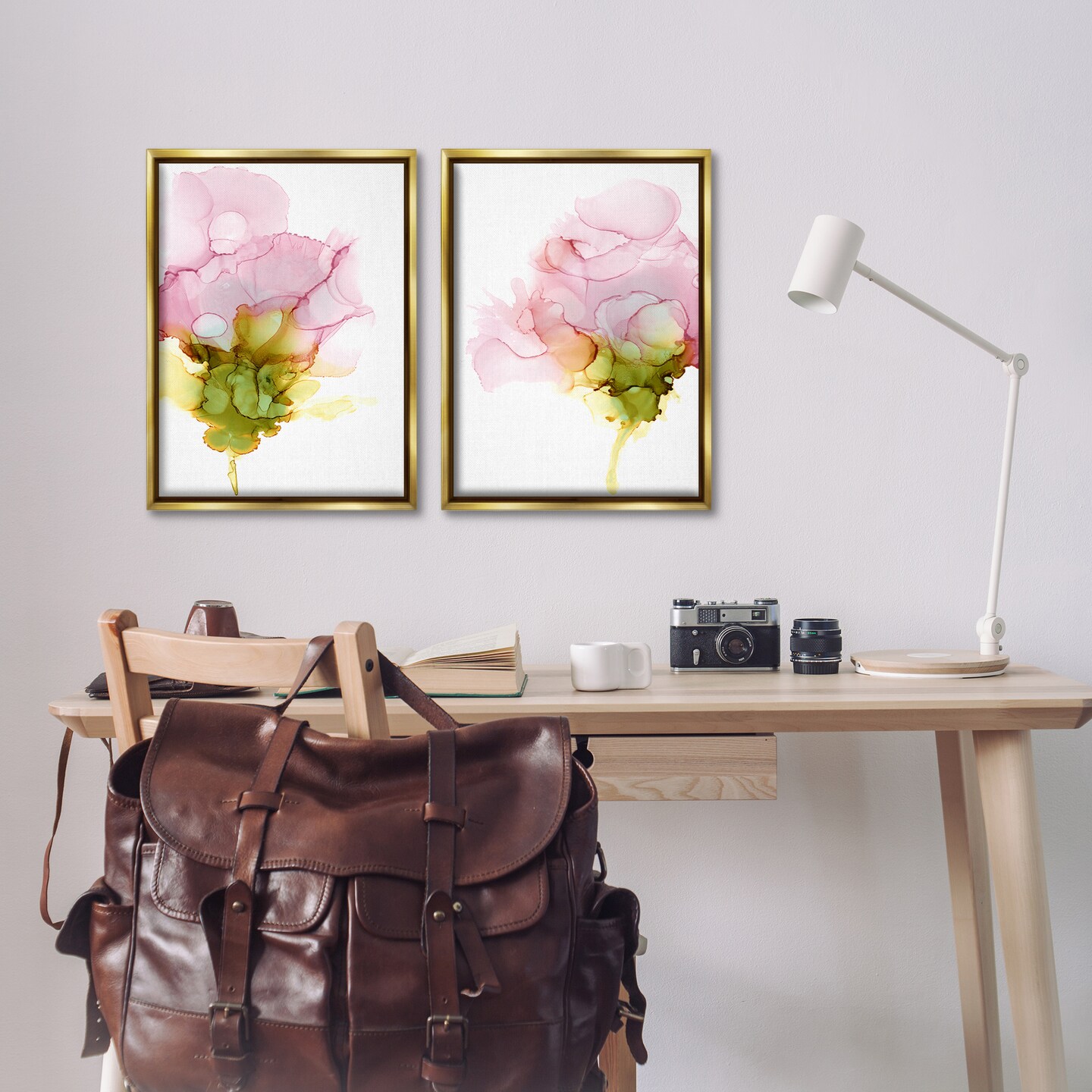 Stupell Industries Blooming Pink Ink Blossom 2 pc Framed Floater Canvas Wall Art Set Design by Jennifer Goldberger