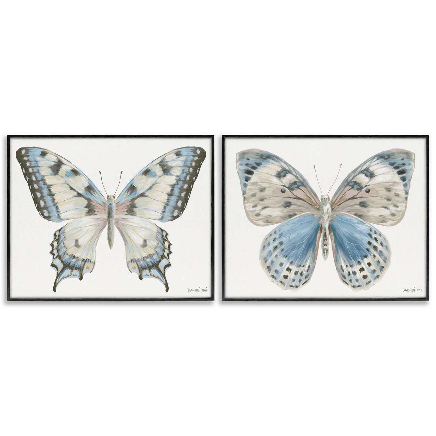 Stupell Industries Blue Accented Butterflies 2 Piece Black Framed Giclee Art Set, design by Danhui Nai