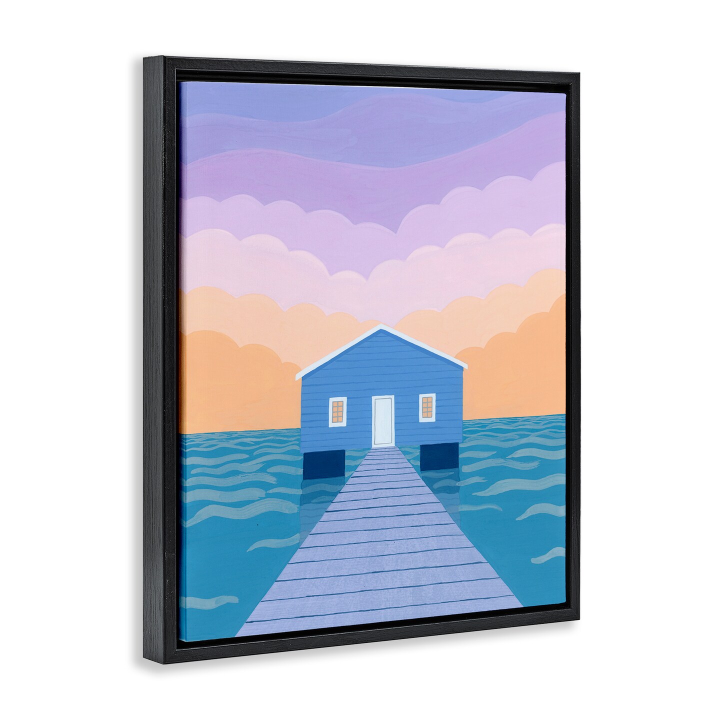 Stupell Industries Blue Boat Shed Sunrise Floating Frame, design by Courtney Haley