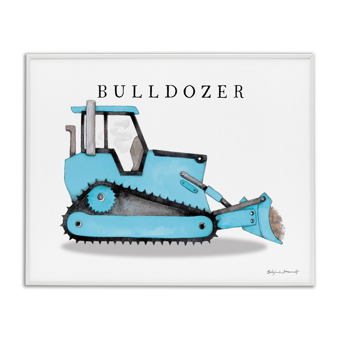 Stupell Industries Blue Bulldozer Construction Machine Framed Giclee Art
