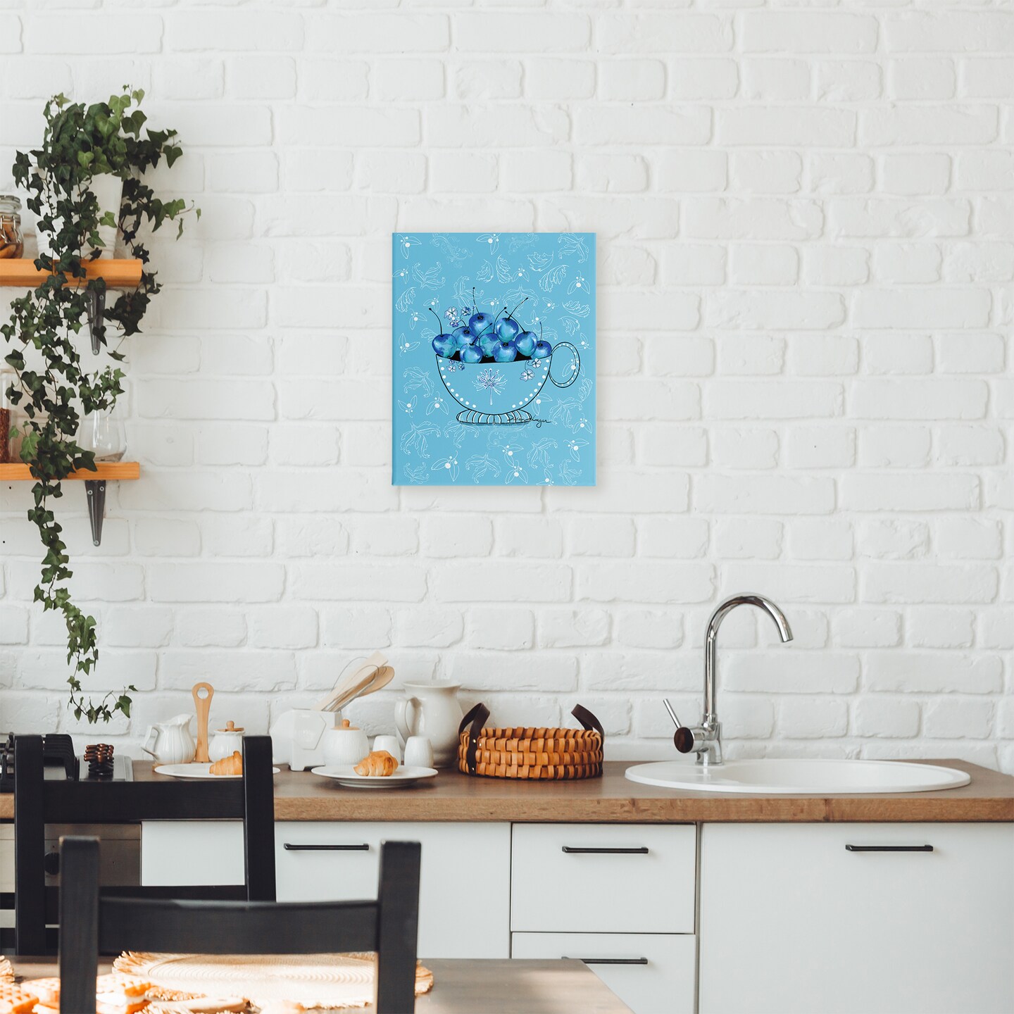 Stupell Industries Blue Cherries Teacup on Florals Canvas, design by Susan Lugar