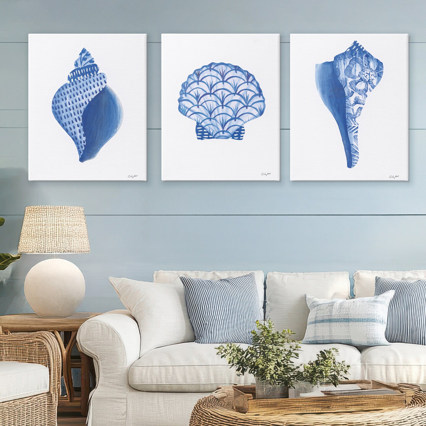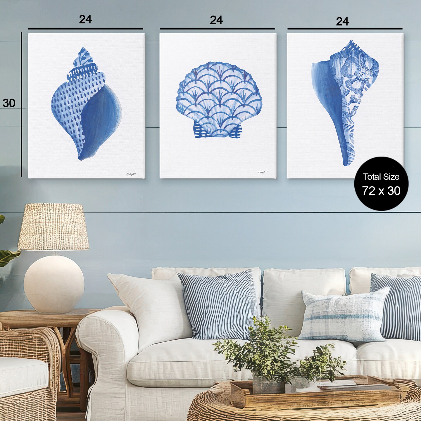 Stupell Industries Blue Chinoiserie Seashells 3pc Canvas Set, design by Courtney Prahl