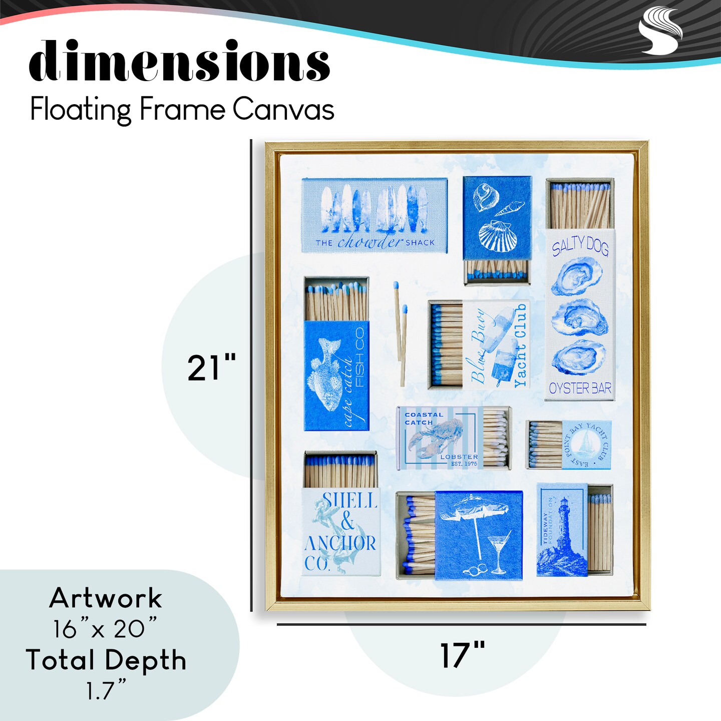 Stupell Industries Blue Coastal Matchboxes Floating Frame, design by Ziwei Li