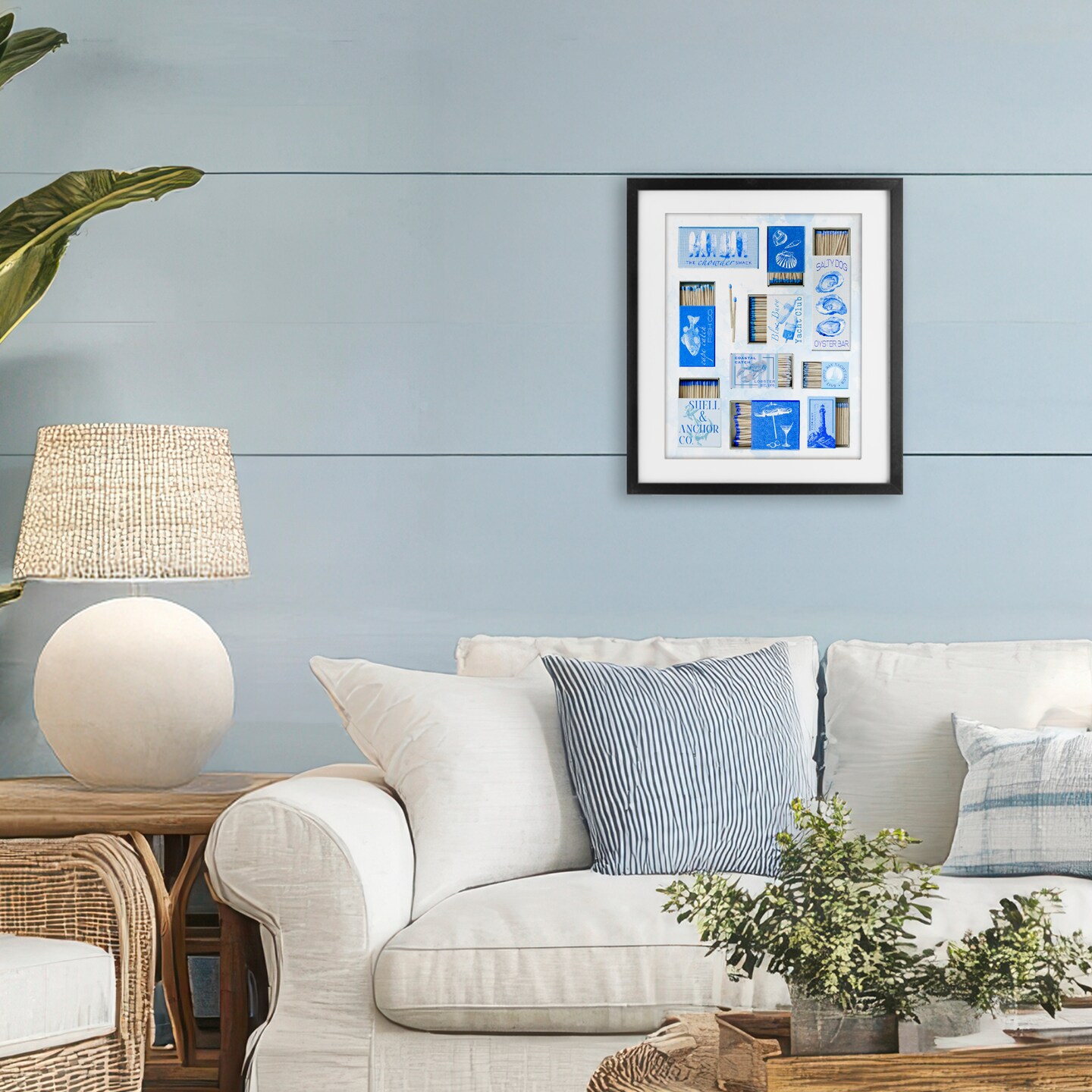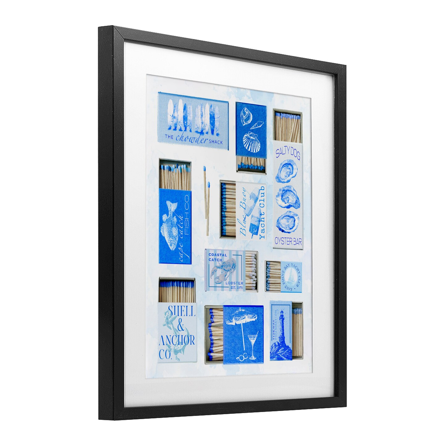 Stupell Industries Blue Coastal Matchboxes Framed Print Under Glass, design by Ziwei Li