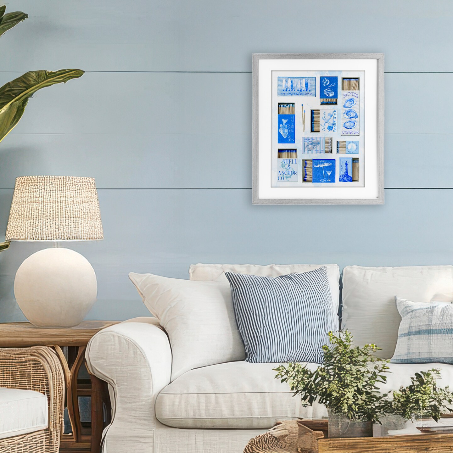 Stupell Industries Blue Coastal Matchboxes Framed Print Under Glass, design by Ziwei Li