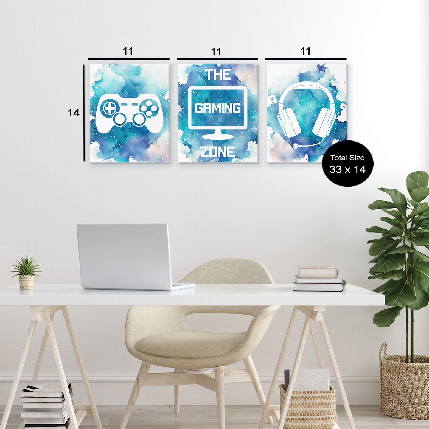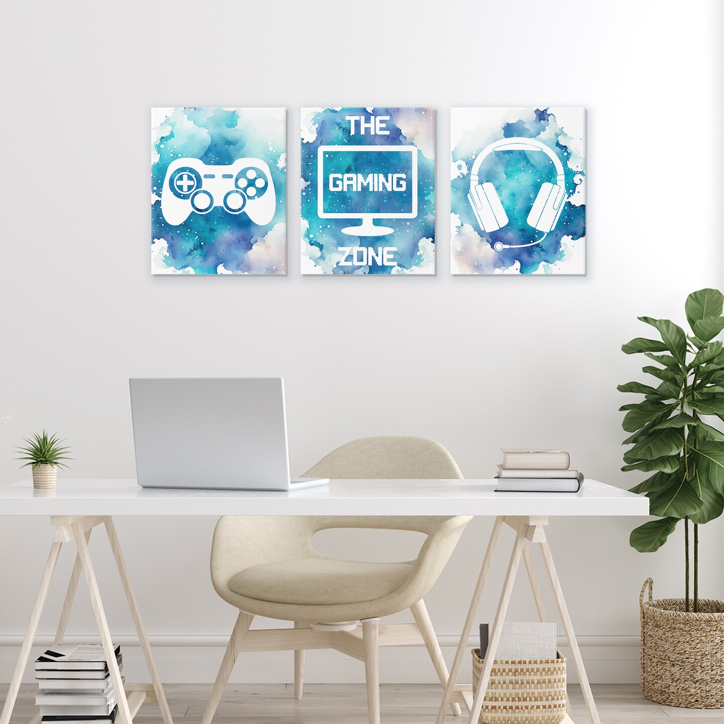 Stupell Industries Blue Gamer Splatters 3pc Canvas Set, design by Marcus Prime