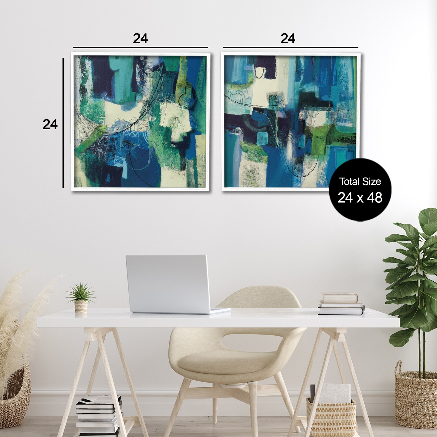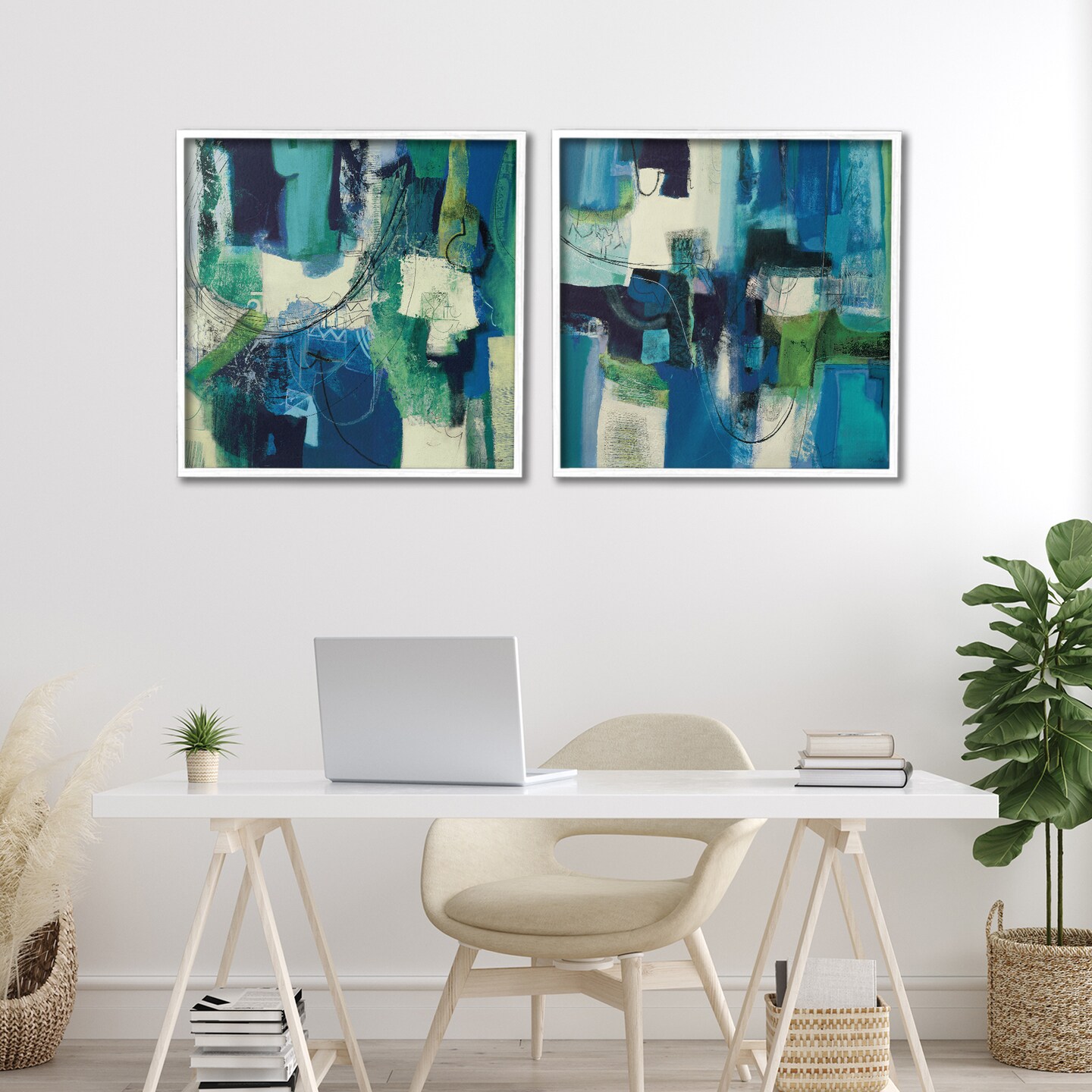 Stupell Industries Blue & Green Abstracts 2pc Framed Giclee Set, design by Maurizio Piovan