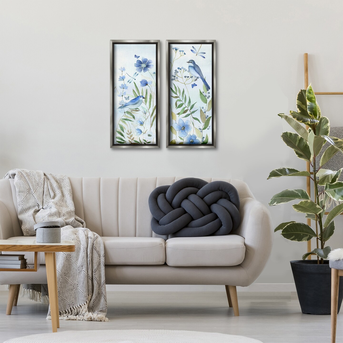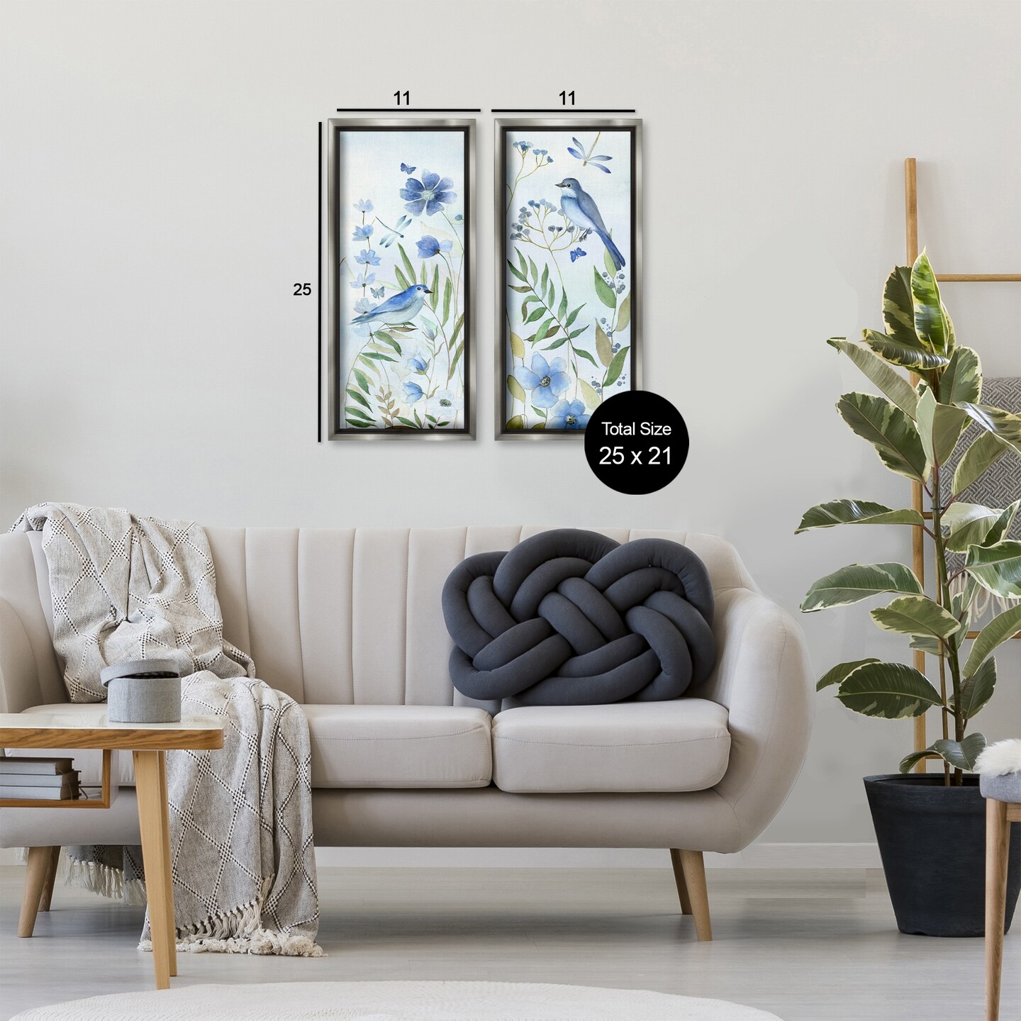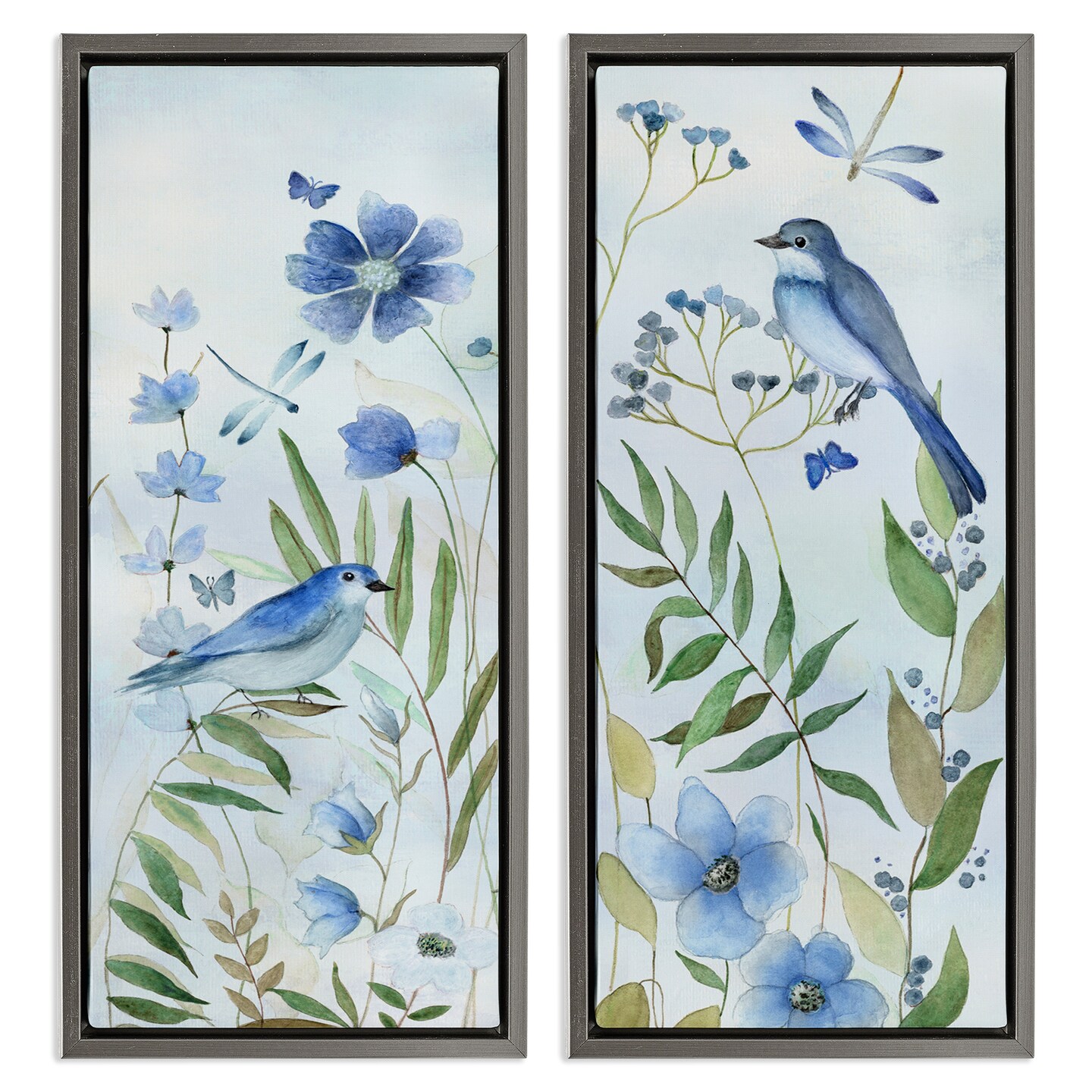 Stupell Industries Blue Hued Flowers & Birds 2pc Floating Frame Set By Janet Tava