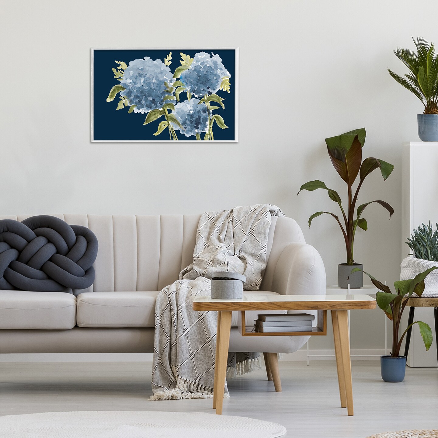 Stupell Industries Blue Hydrangeas on Indigo Framed Giclee, design by Janice Gaynor