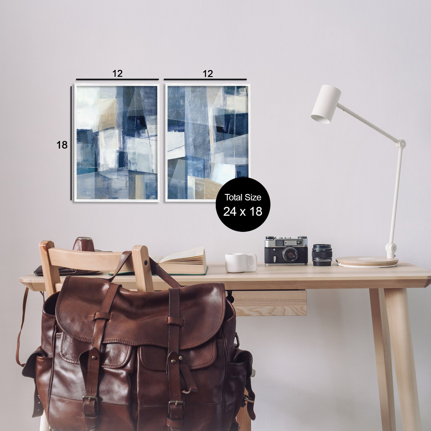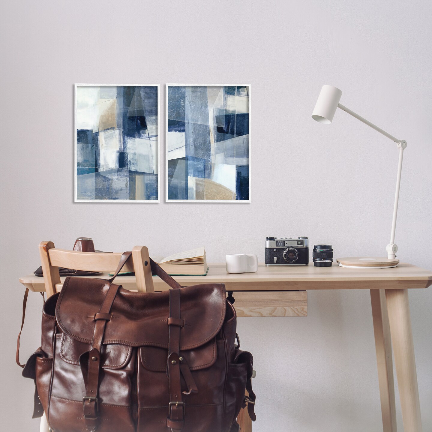 Stupell Industries Blue & Neutral Geometrics 2pc Framed Giclee Wall Art Set Design by Hannah Dawson