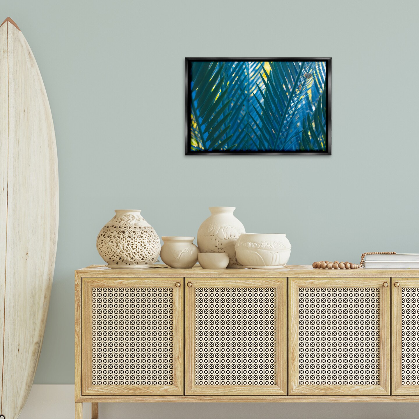 Stupell Industries Blue Palm Fronds Framed Floater Canvas Wall Art Design by Carol La Barge