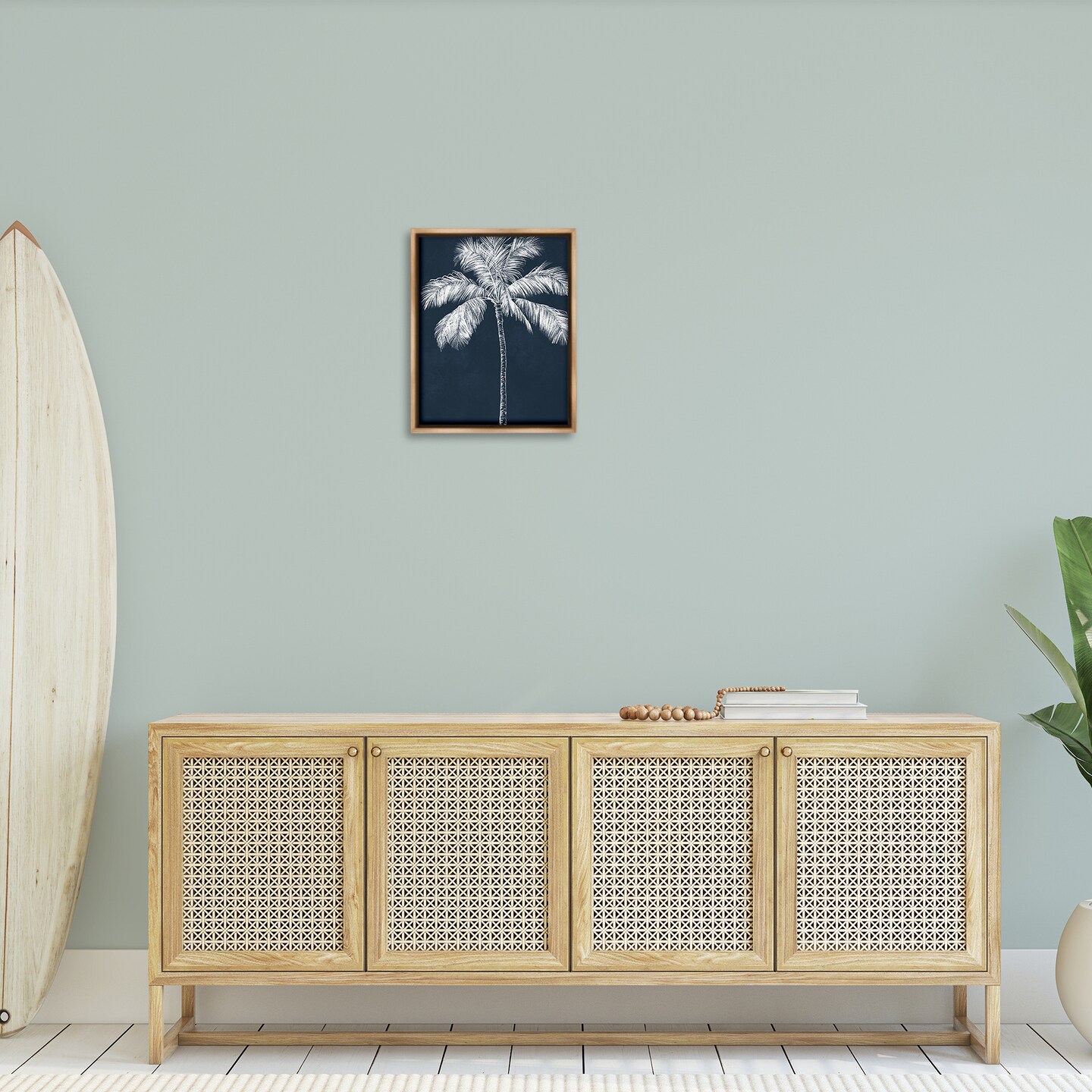 Stupell Industries Blue Palm White Tree Floating Frame By Leah Noel Art