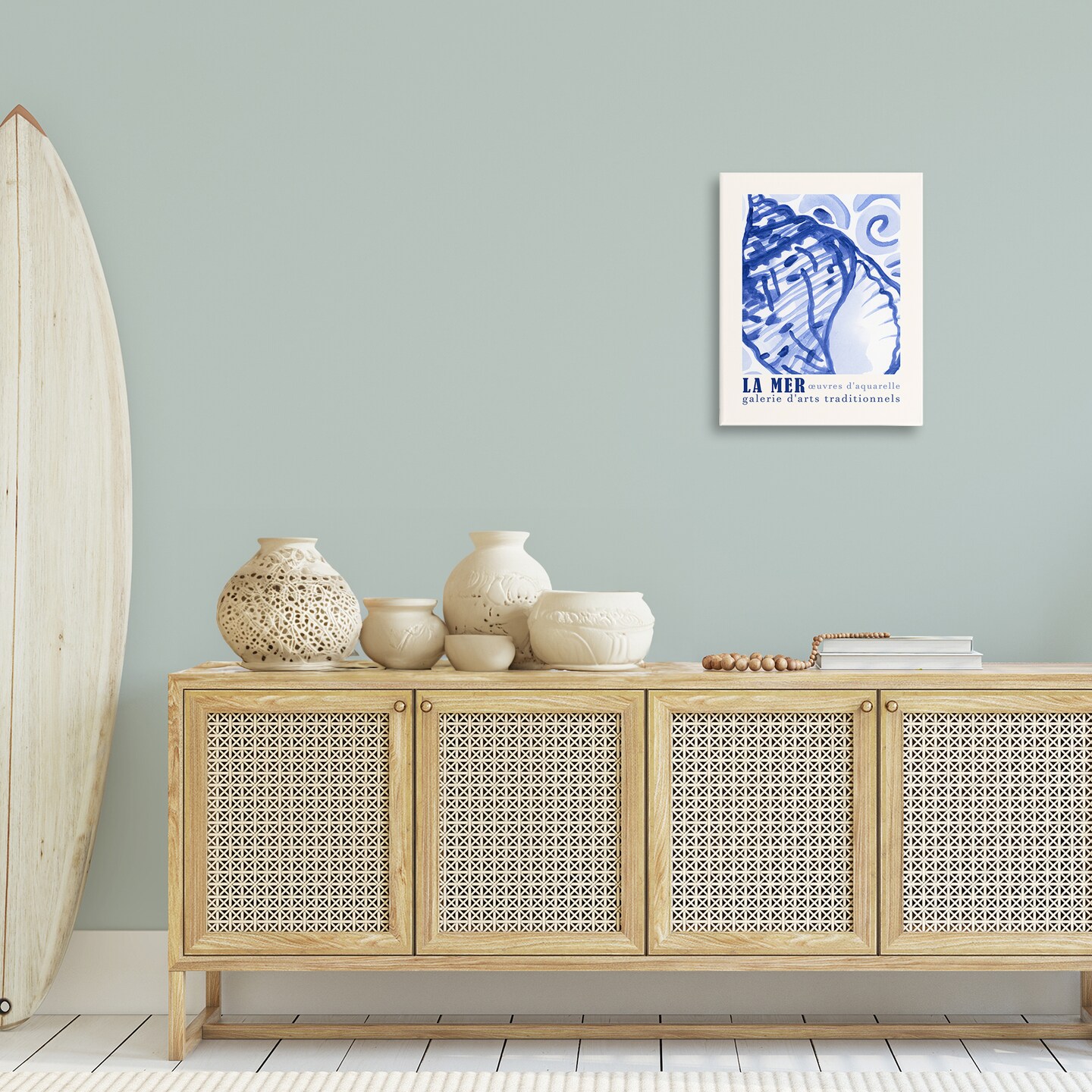Stupell Industries Blue Seashell Gallery Show Canvas Wall Art Design by June Erica Vess