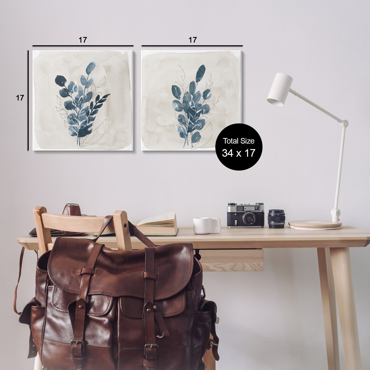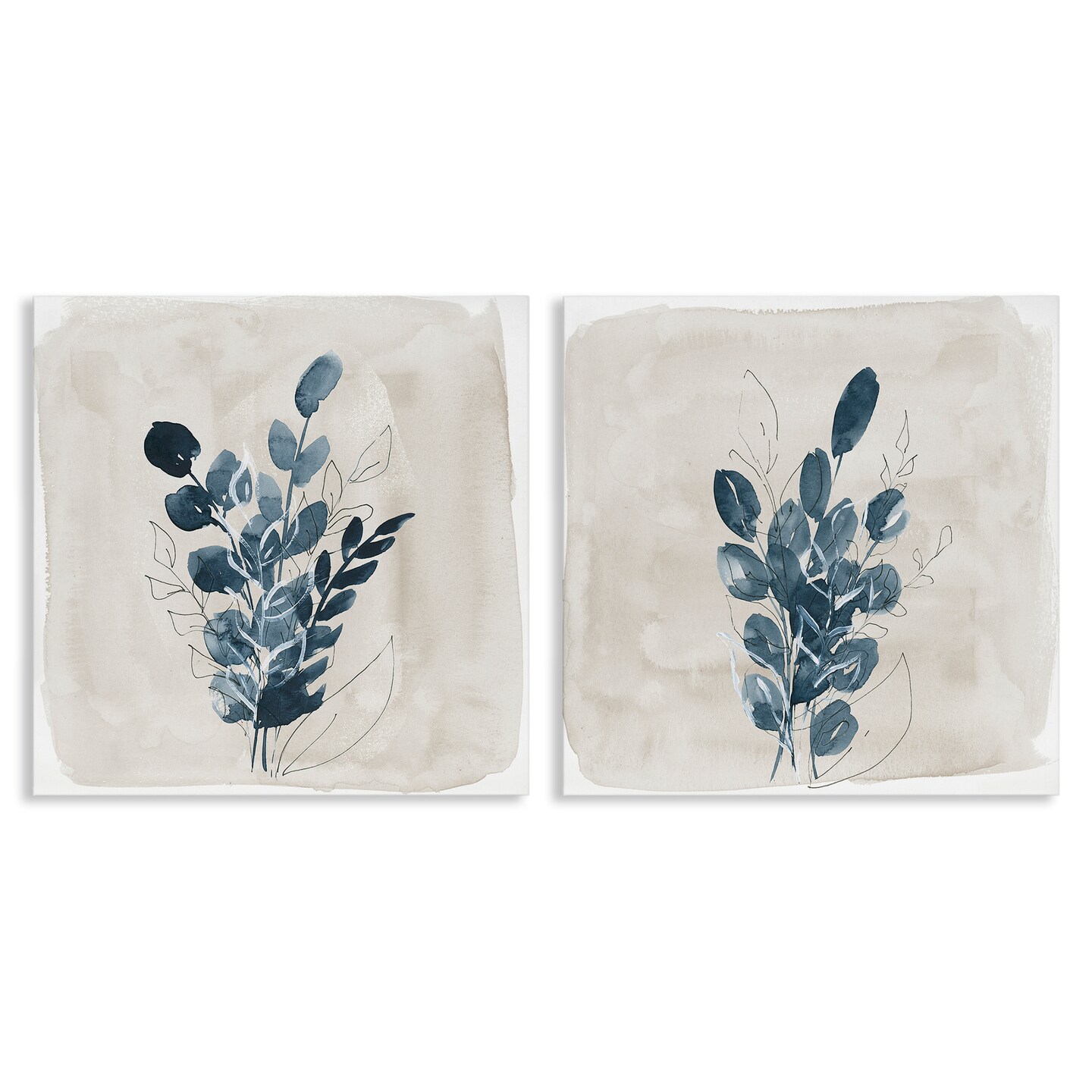 Stupell Industries Blue Summer Leaves 2 pc Canvas Wall Art Set Design by Lucille Price