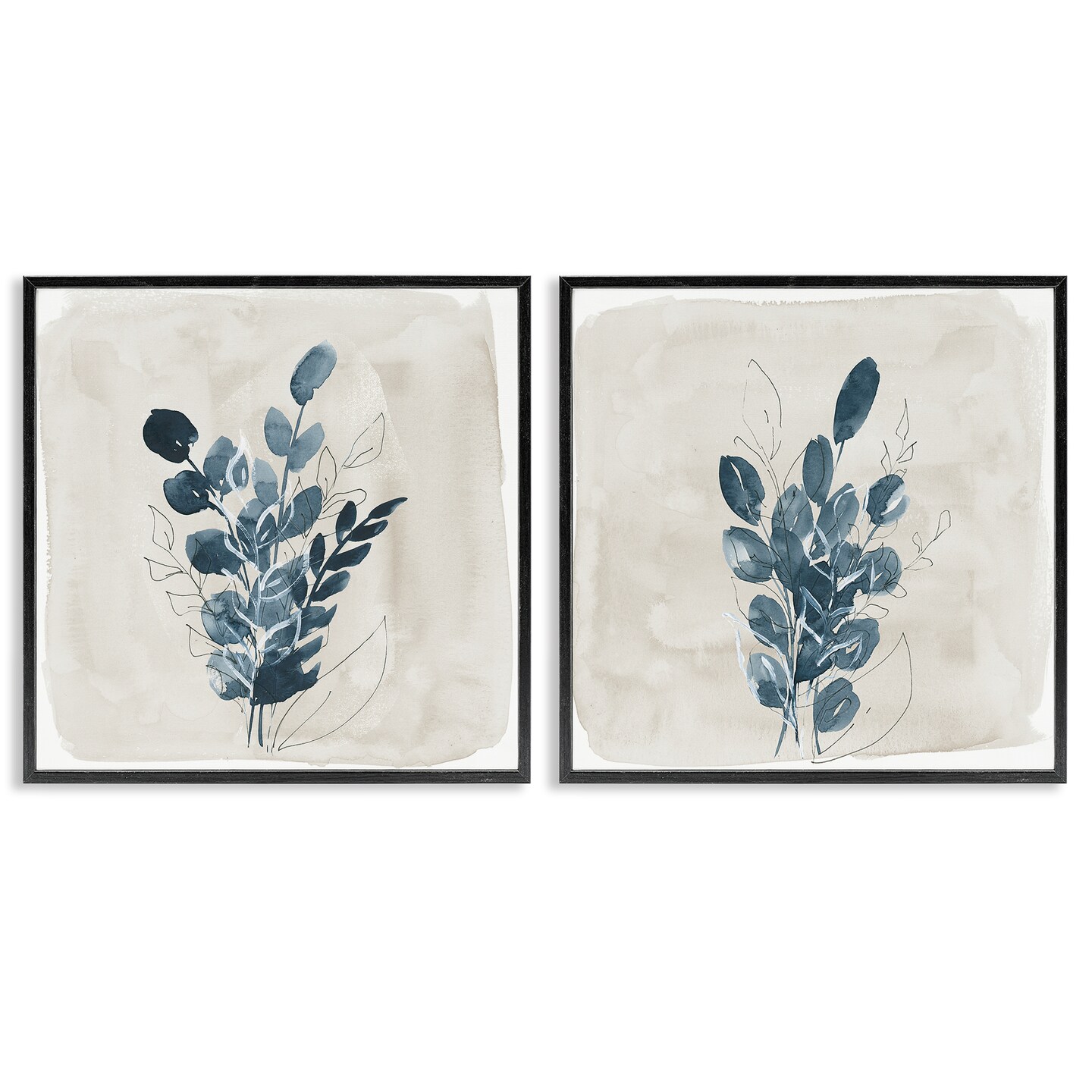 Stupell Industries Blue Summer Leaves 2 pc Framed Giclee Wall Art Set Design by Lucille Price