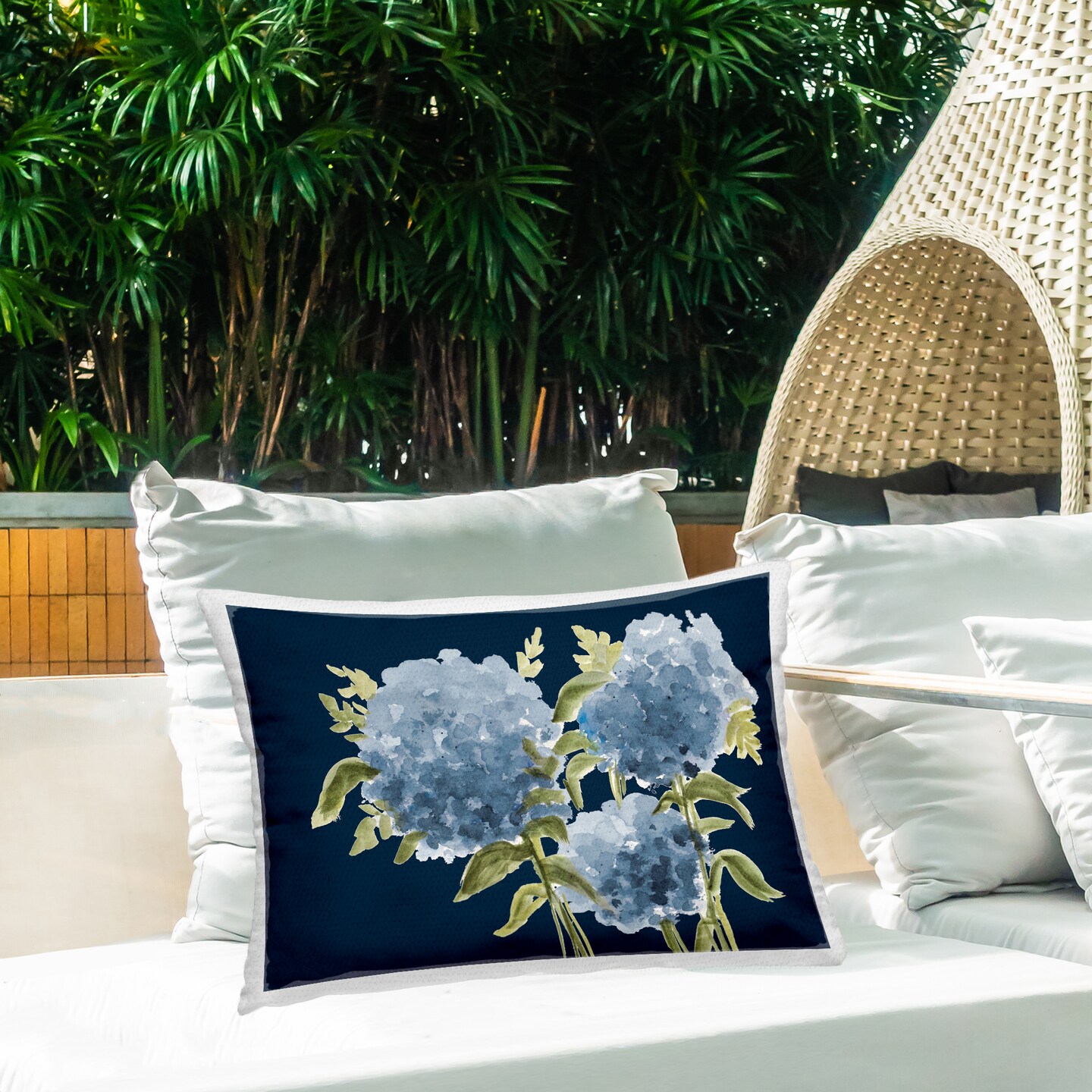 Stupell Industries Blue Toned Hydrangeas Trio Outdoor Printed Pillow, design by Janice Gaynor, 14 x 7 x 20