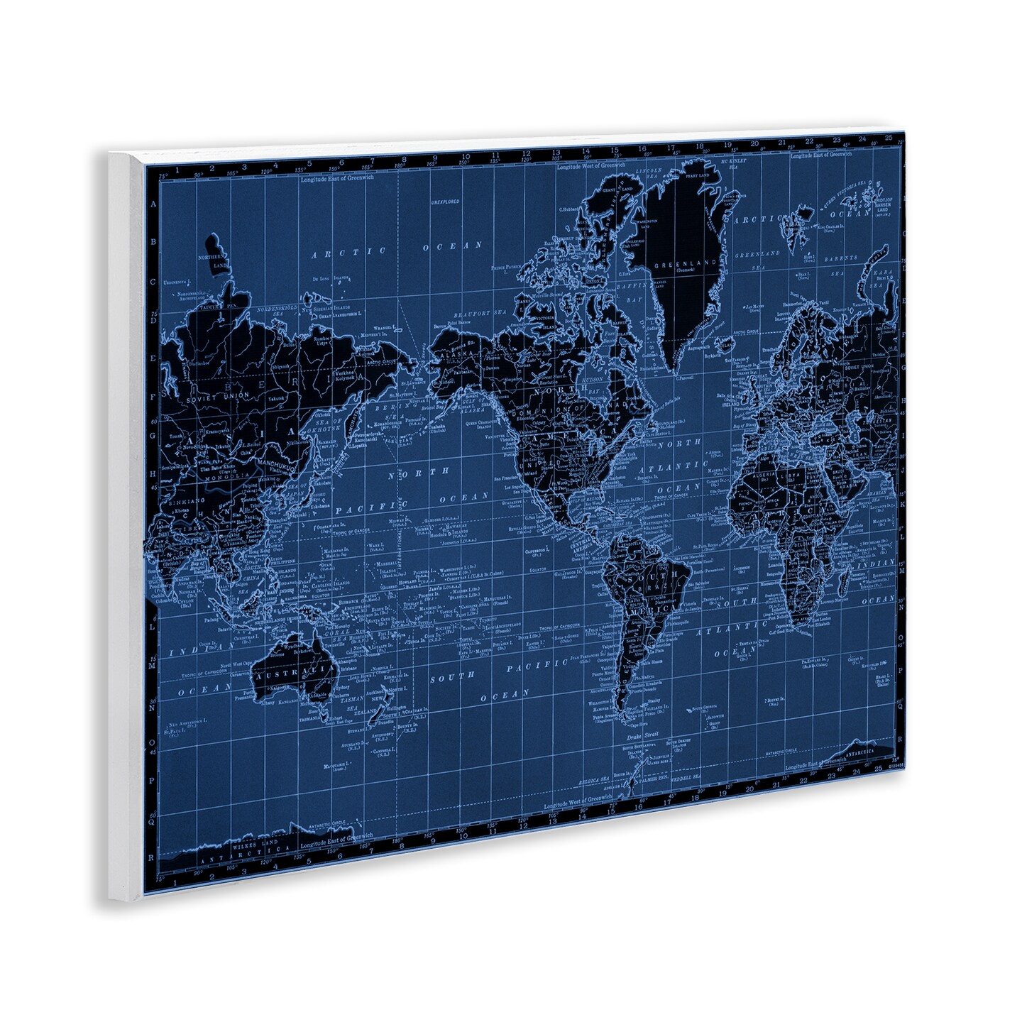 Stupell Industries Blue Toned World Map Wall Plaque Design by Phillipa Katz