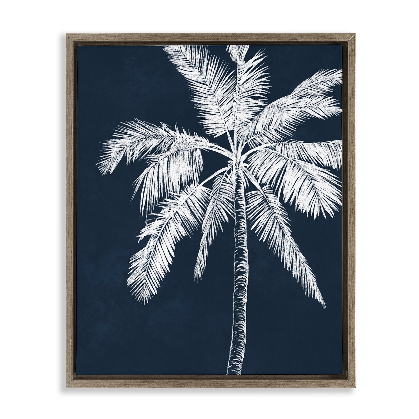Stupell Industries Blue White Palm Tree Floating Frame By Leah Noel Art
