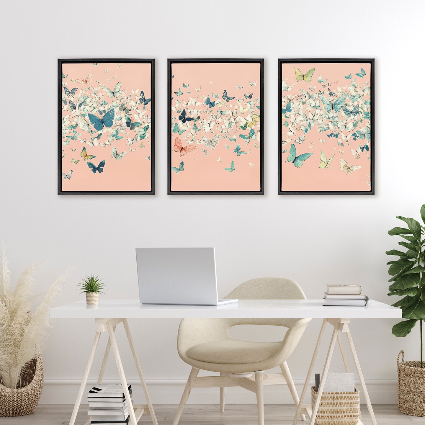 Stupell Industries Blush Butterfly Soiree Triptych 3pc Floating Frame Set, design by Petal Prints Design