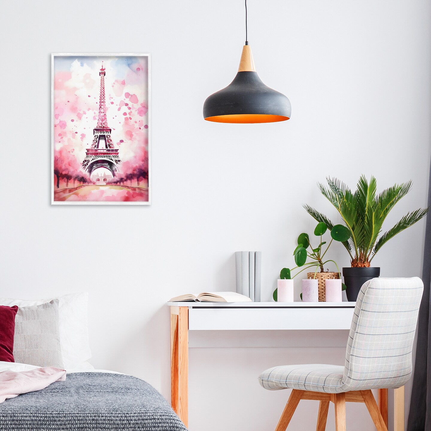 Stupell Industries Blush Watercolor Eiffel Tower Framed Giclee, design by Creative Studio
