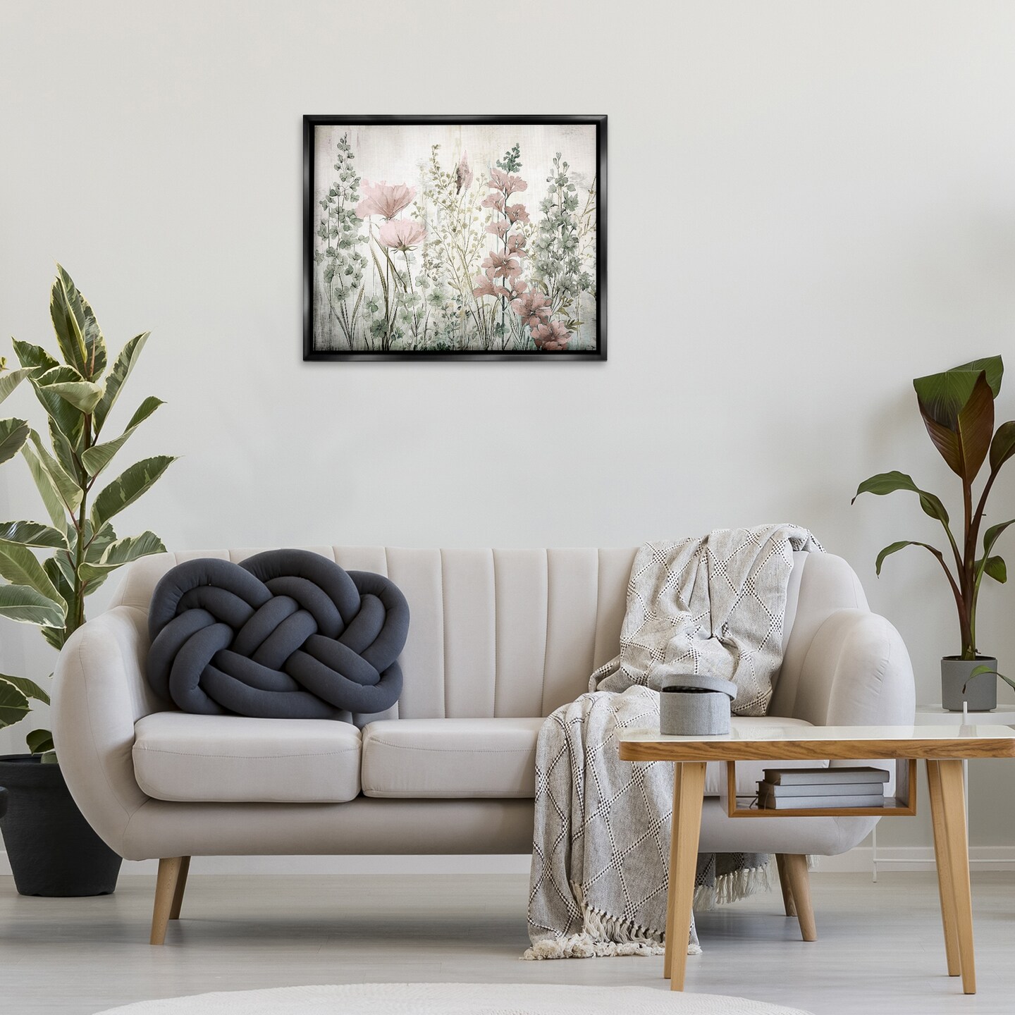 Stupell Industries Blush Wildflower Sprigs Framed Floater Canvas Wall Art Design by Sasha